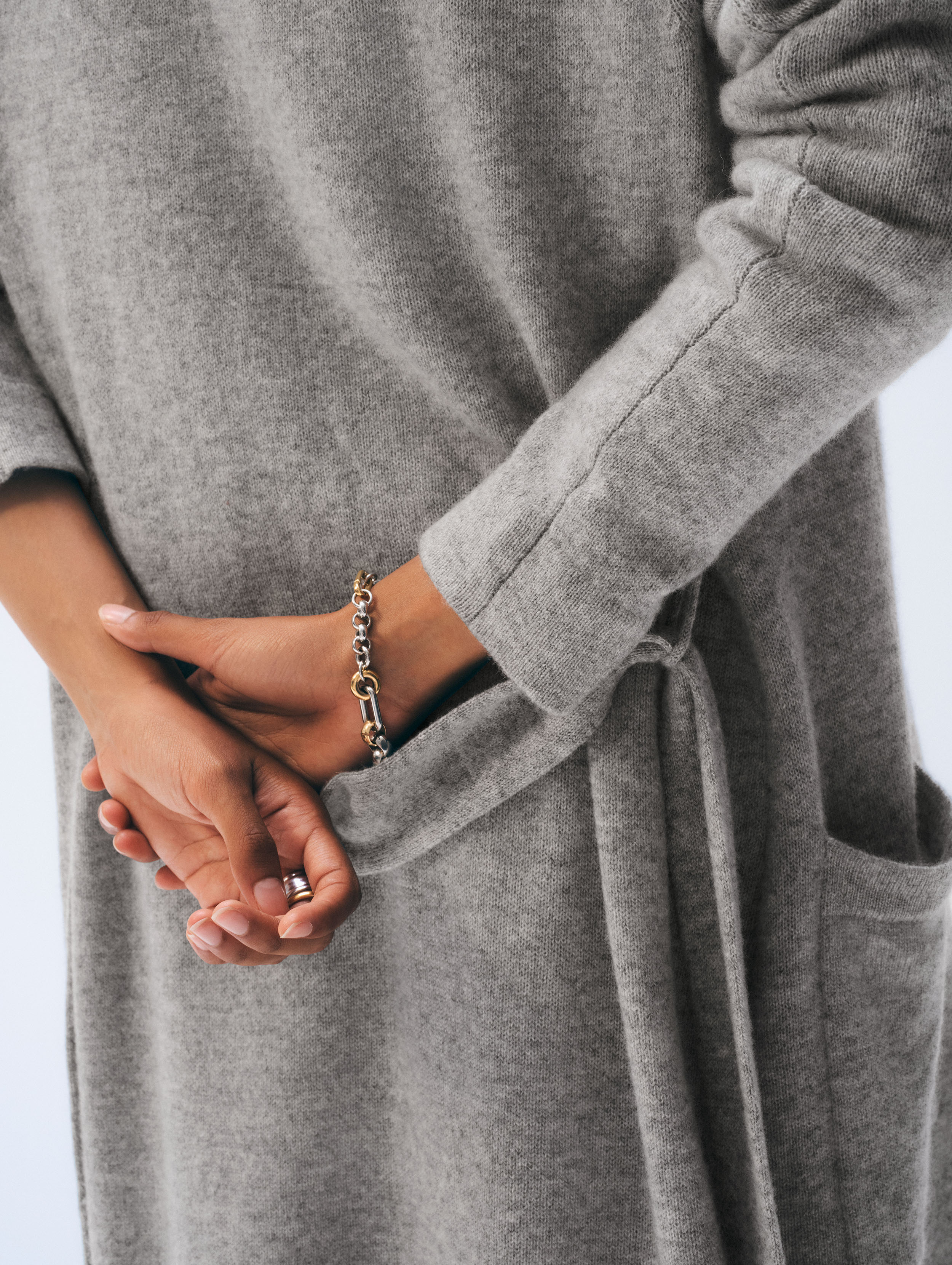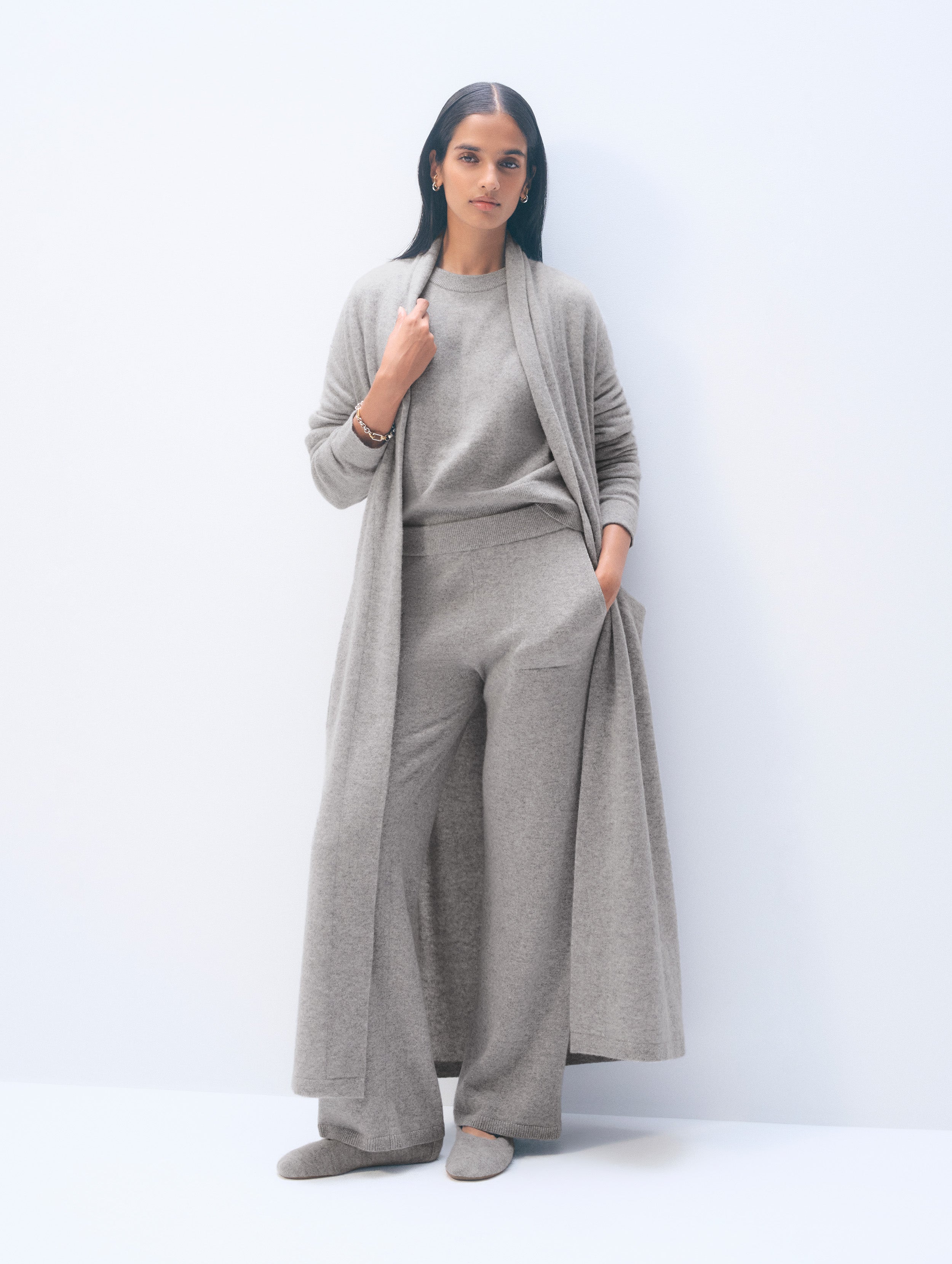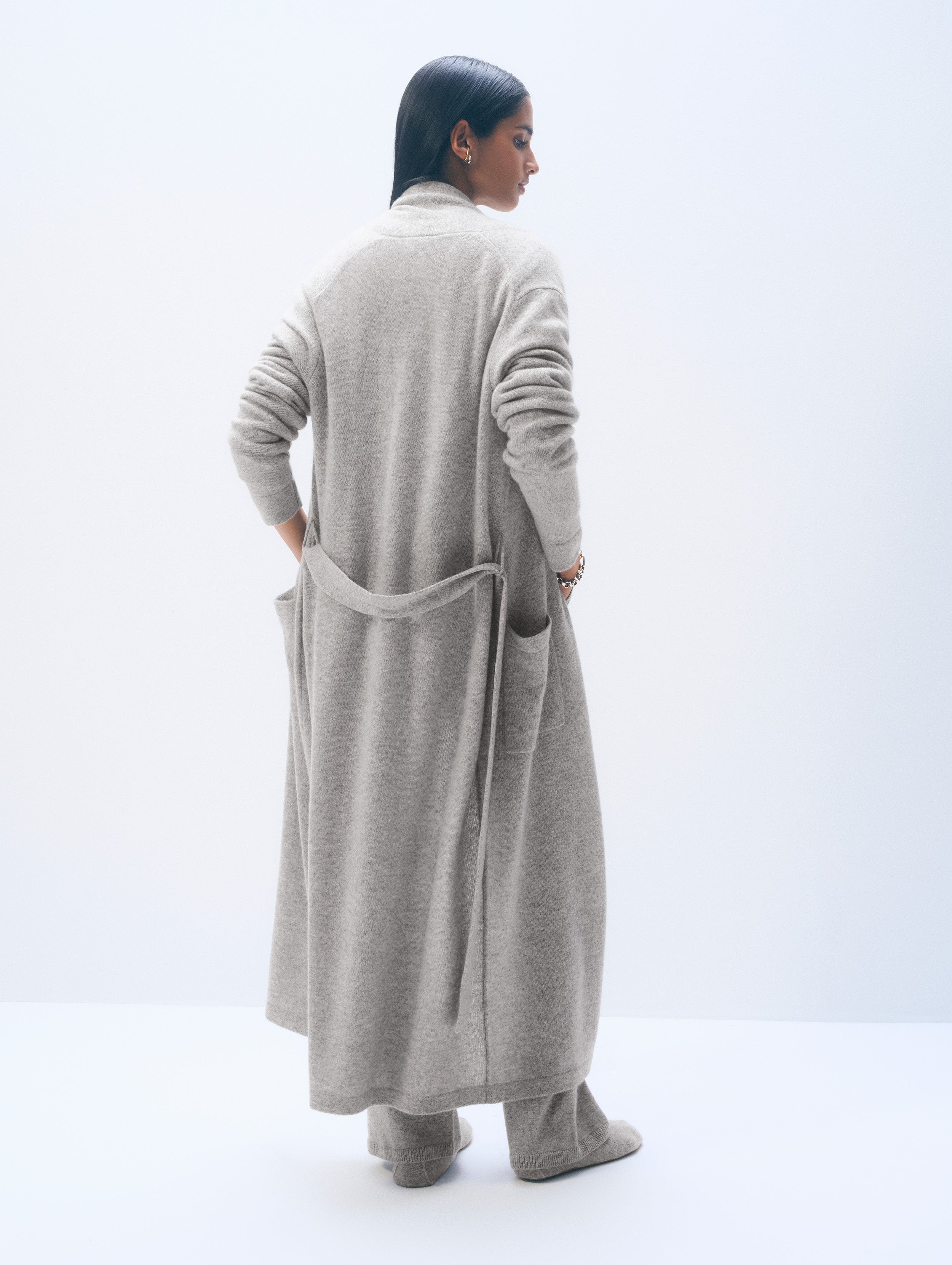 The ultimate indulgence. Spun from our signature cashmere, this long robe is finished with a shawl collar, patch pockets, and a waist tie for all-enveloping comfort.
