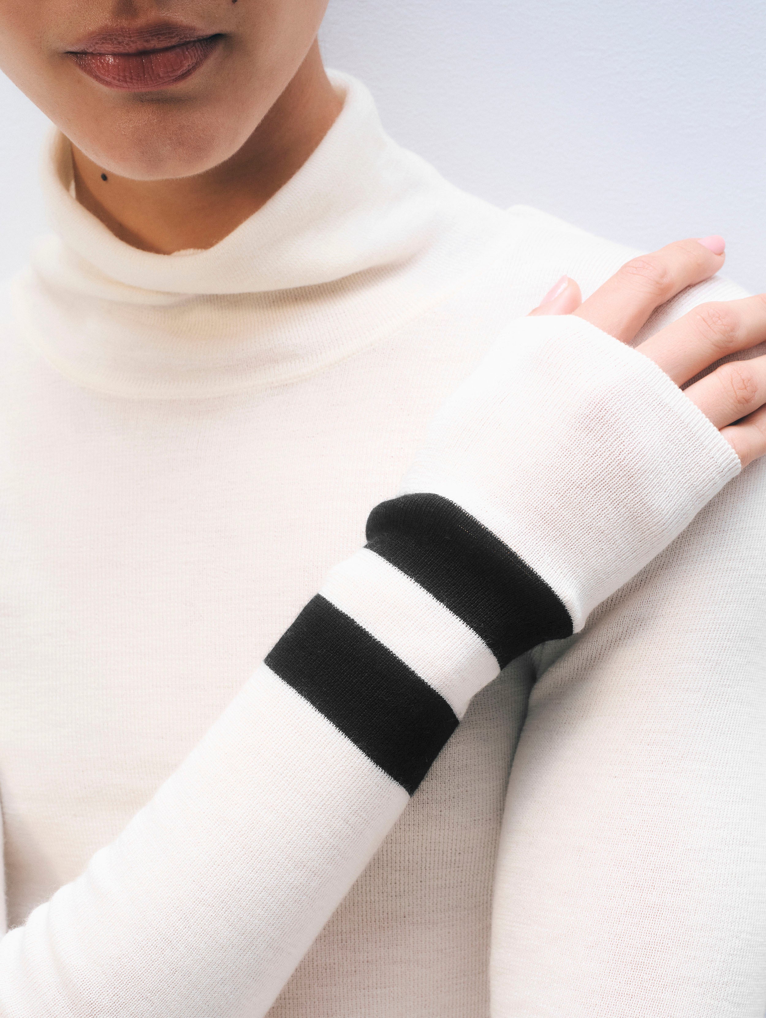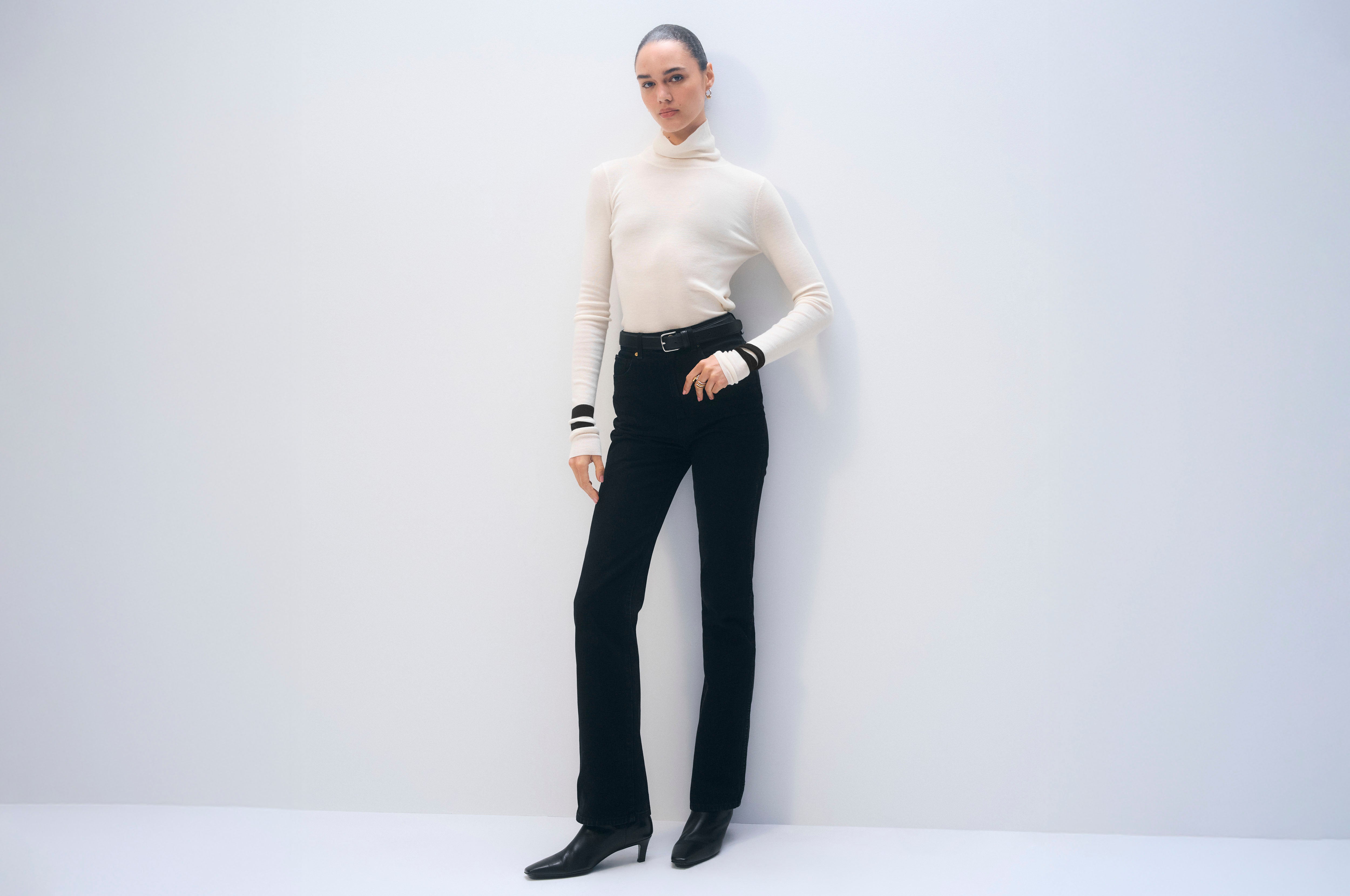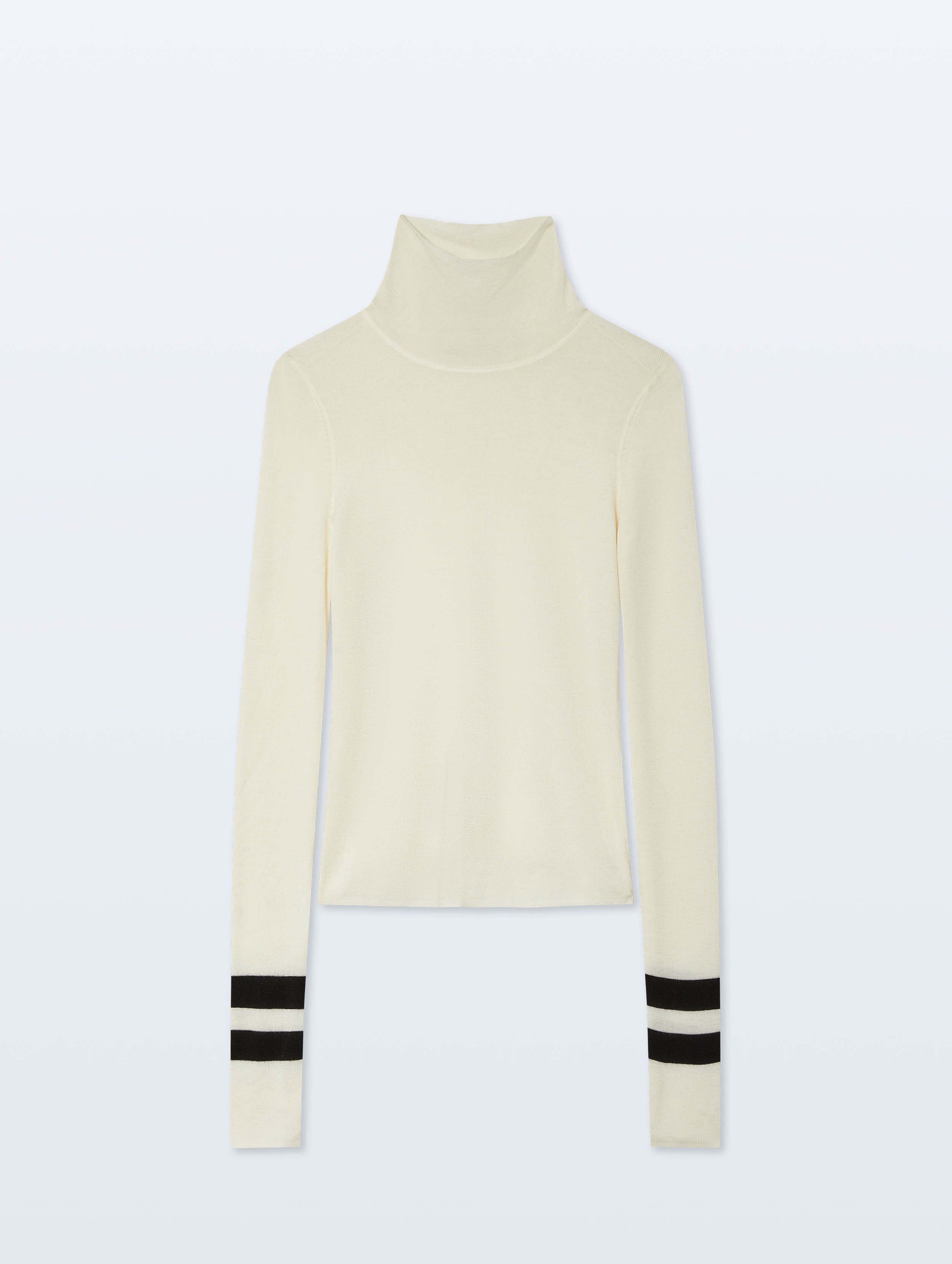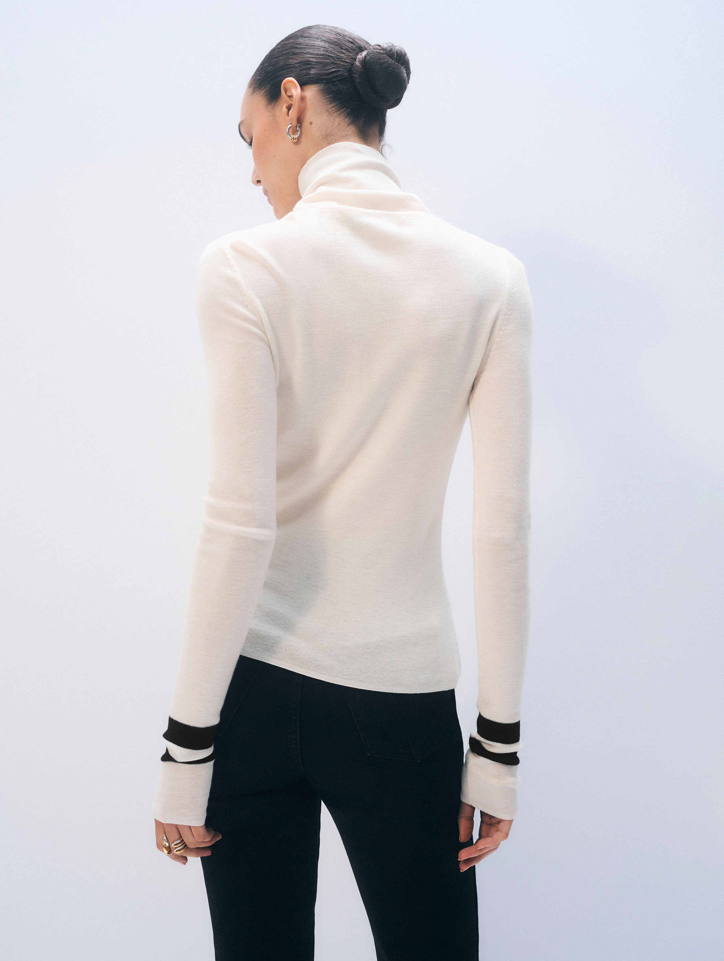 Superfine Merino Fitted Turtleneck | Cream/Black