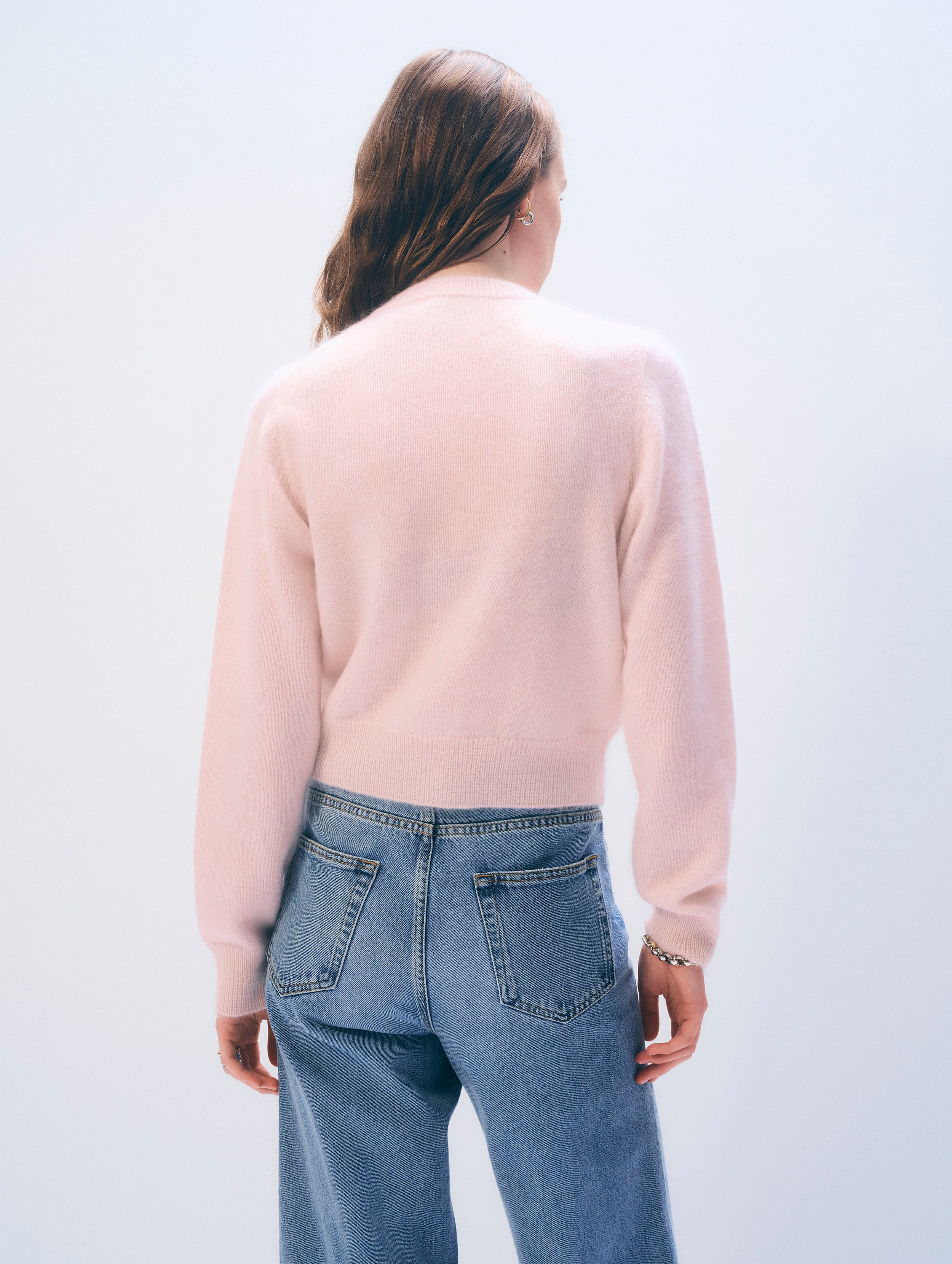 Brushed Cashmere Crewneck Cardigan | Powdered Rose