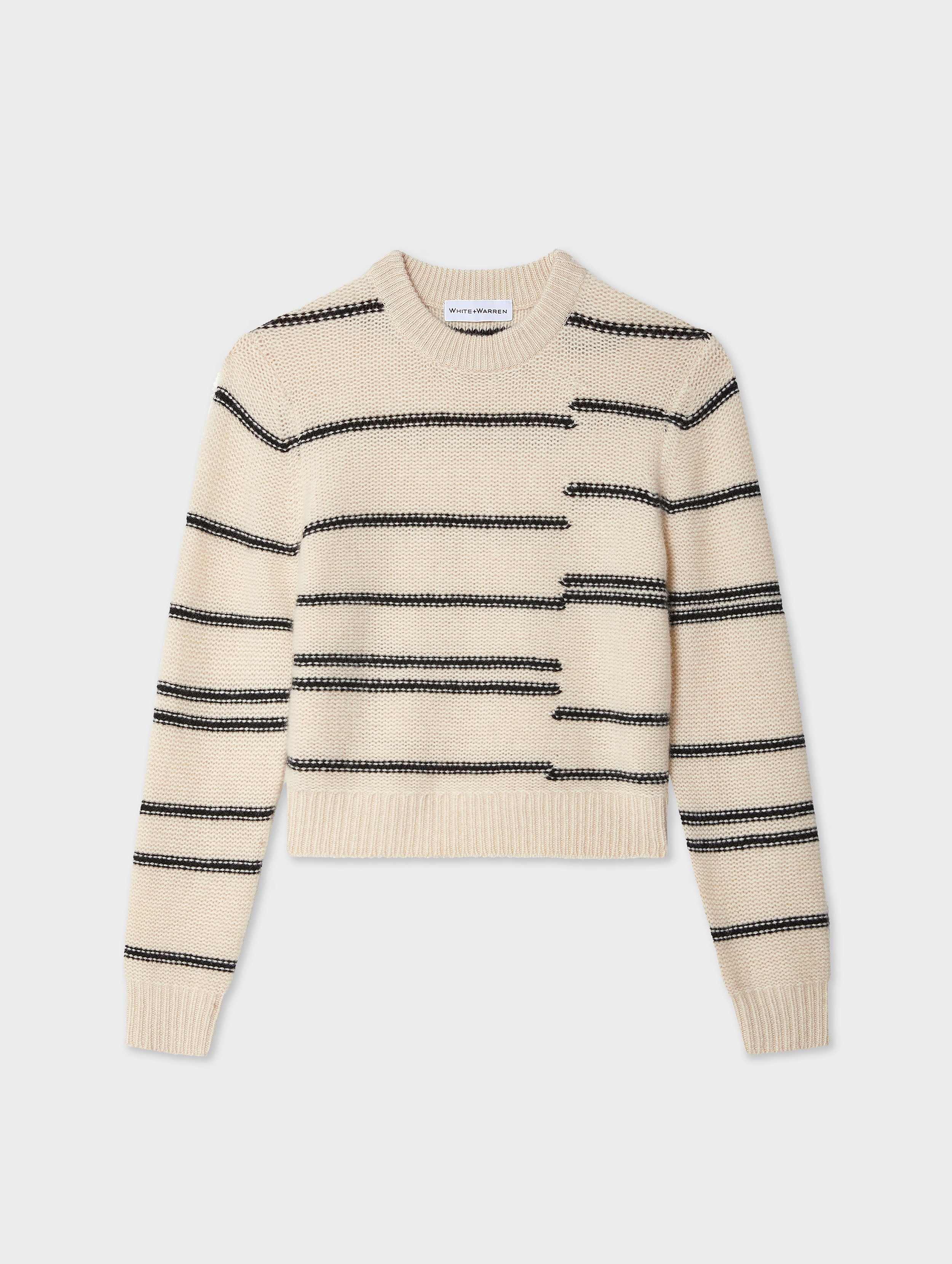 Cashmere Broken Stripe Crewneck | Natural/Black