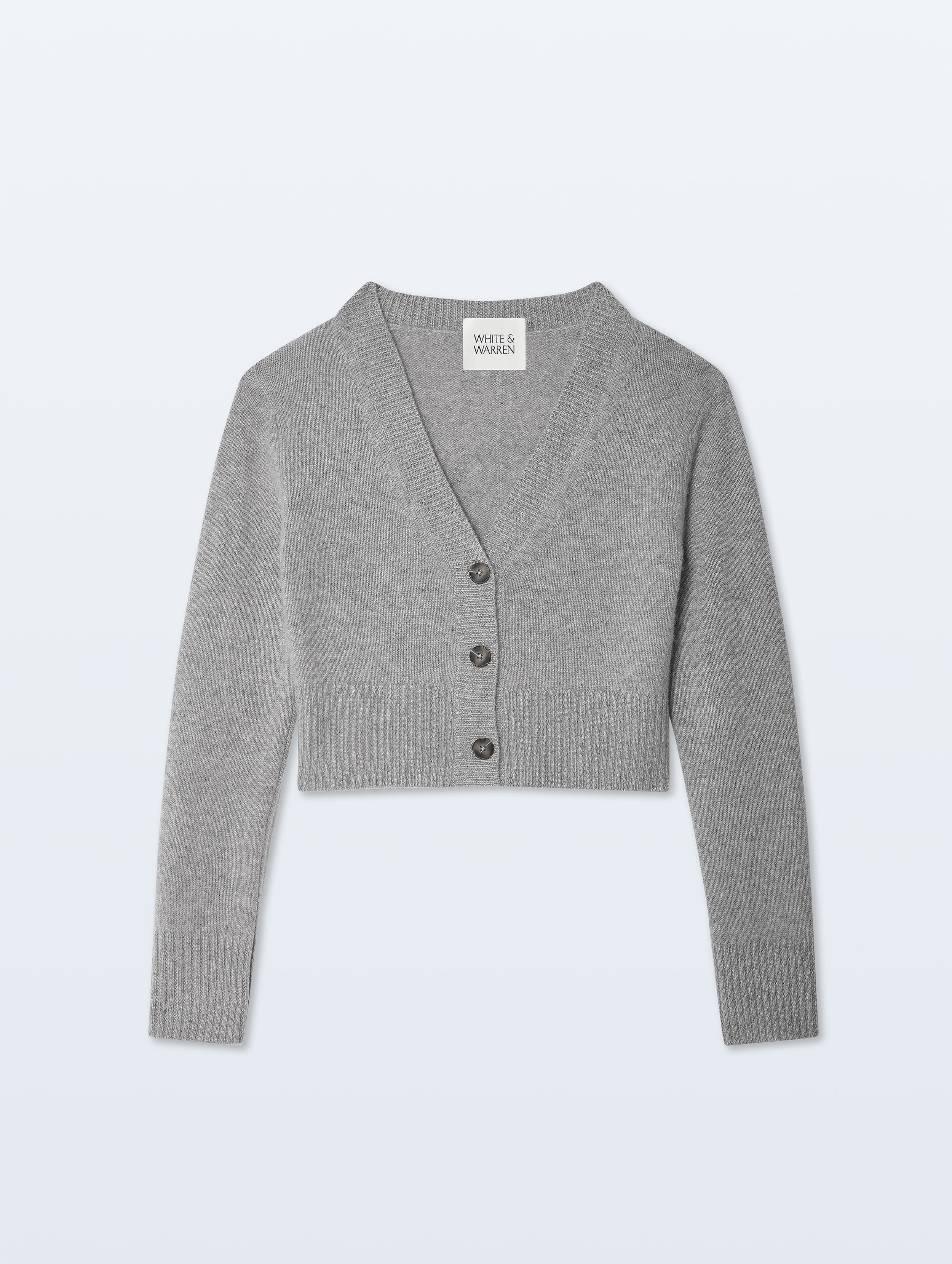 The Cashmere Button Cardigan is a cult favorite for a reason. Made with 100% cashmere, it boasts a v-neckline and button-front closure. The sweater's cropped silhouette adds a modern touch, designed to flatter and layer seamlessly over denim or dresses.