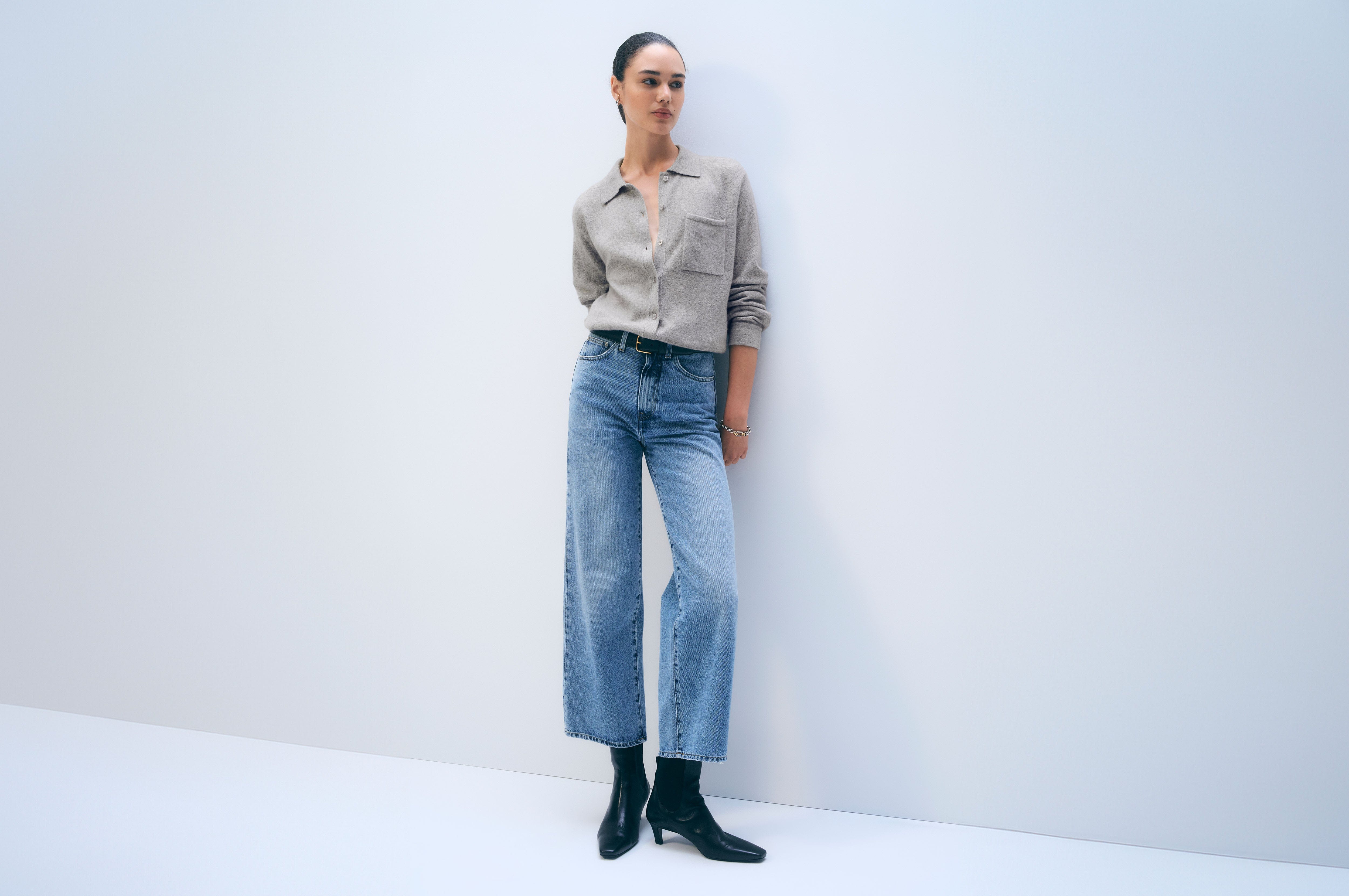 We're known for our Mongolian cashmere, made supremely soft through a custom wash technique. Select cashmere styles are finished with three hand-embroidered bar tacks at the back neck or side seam—an abstract "W" that signifies the White & Warren touch.