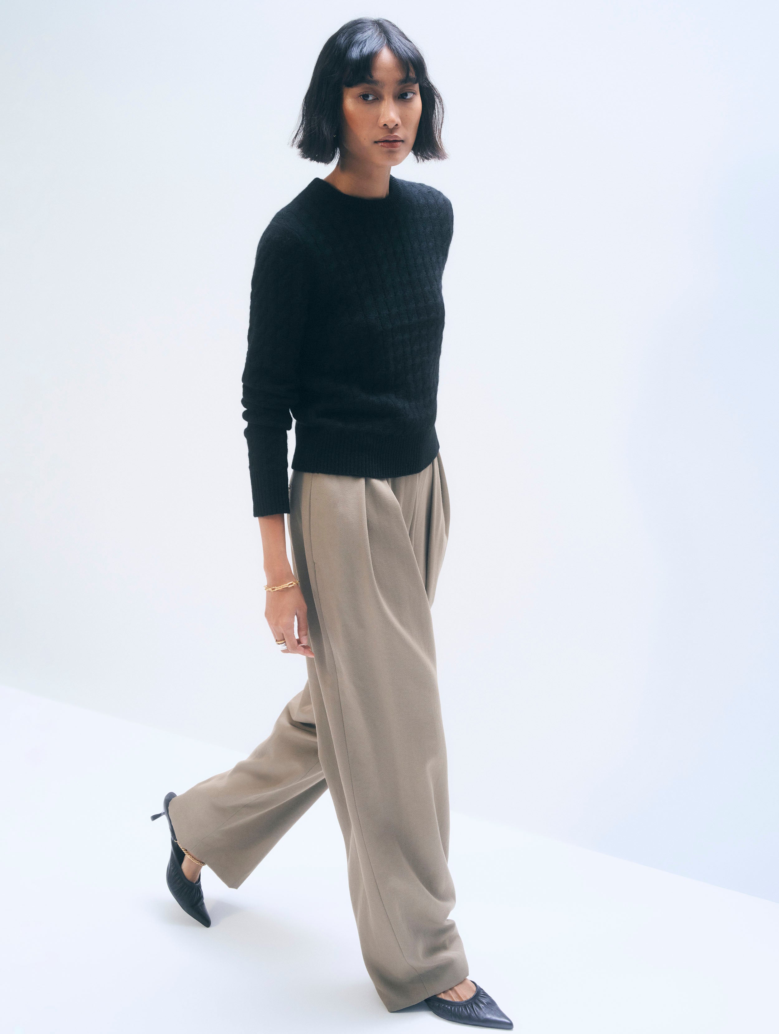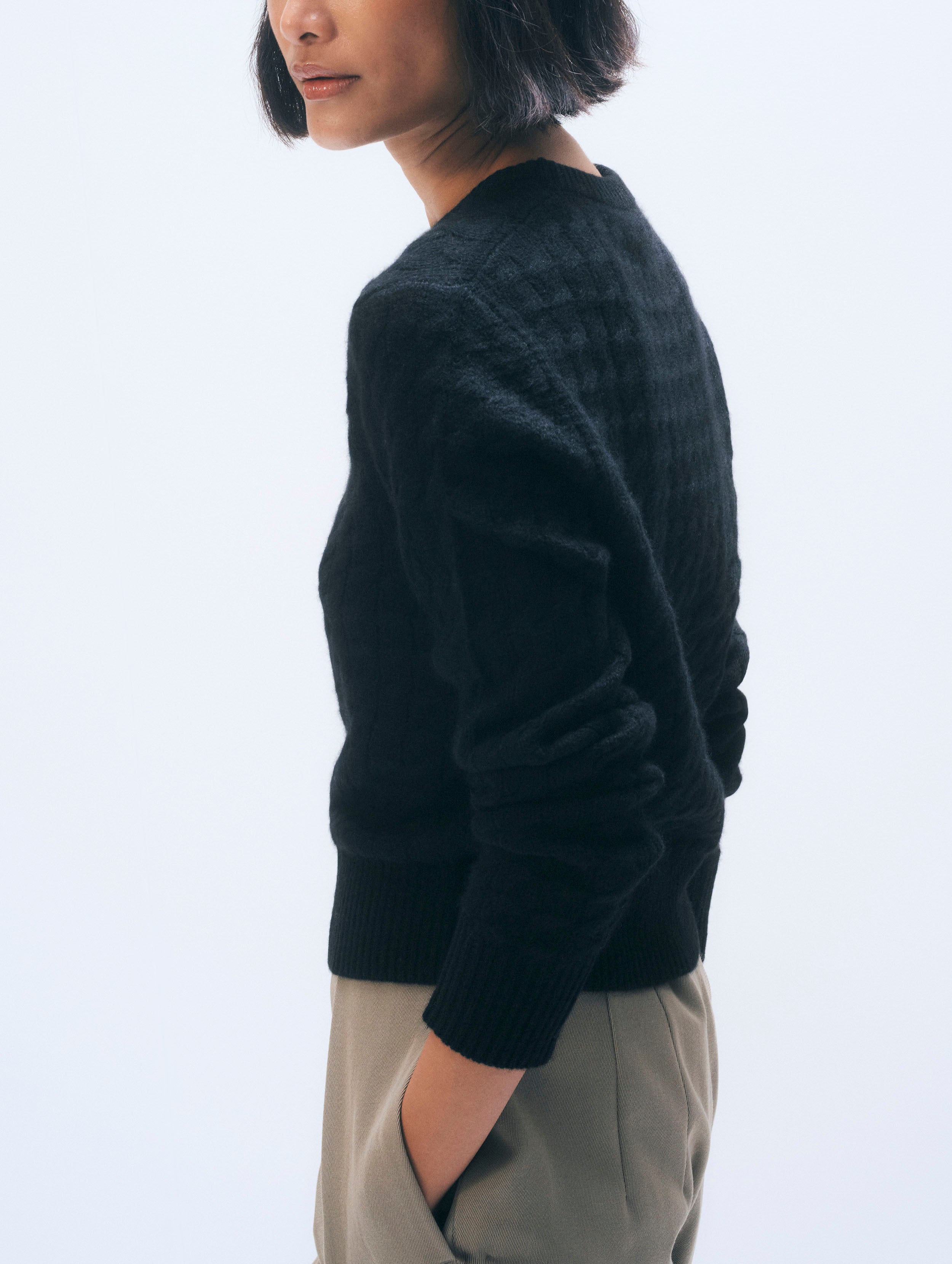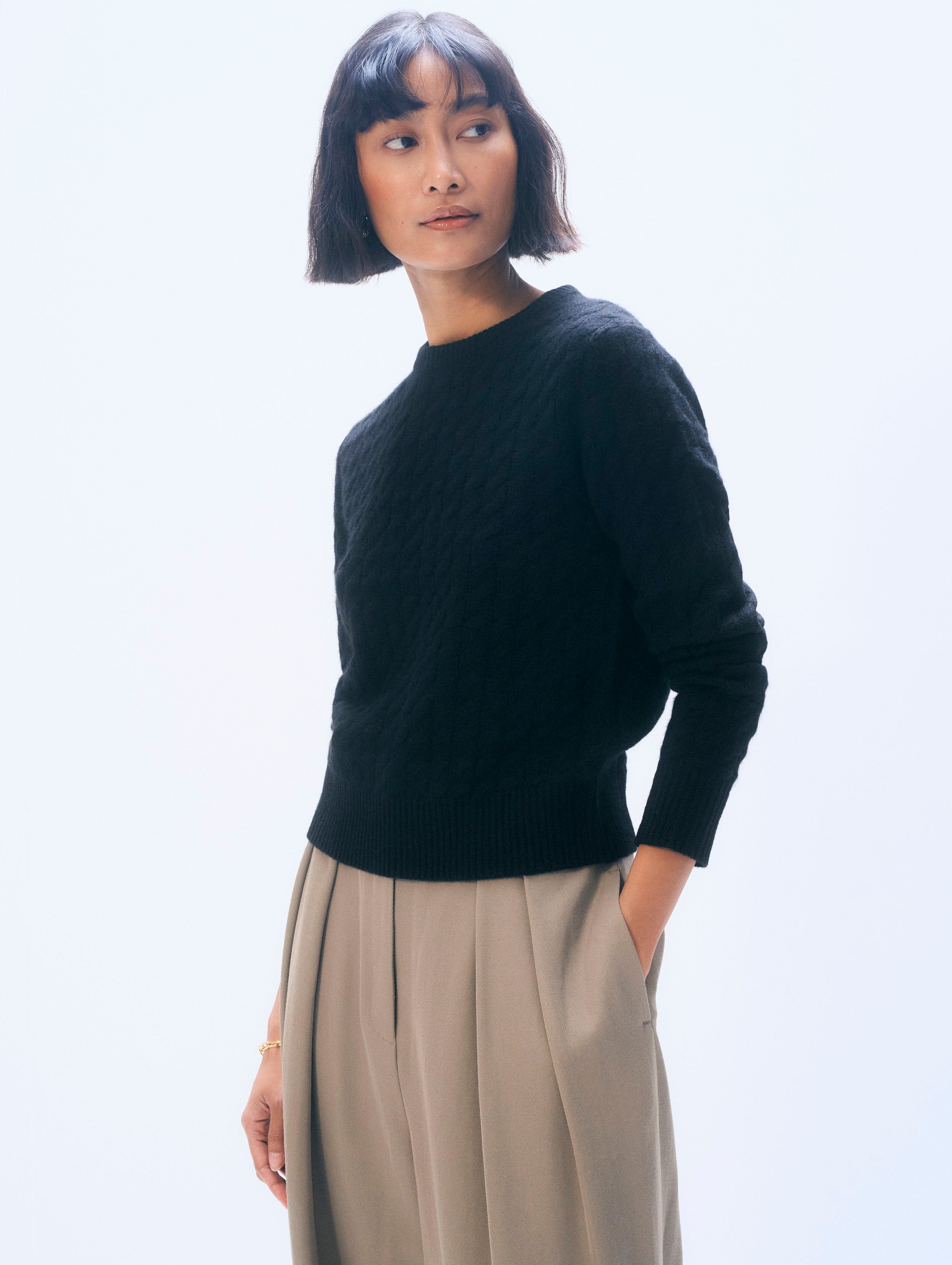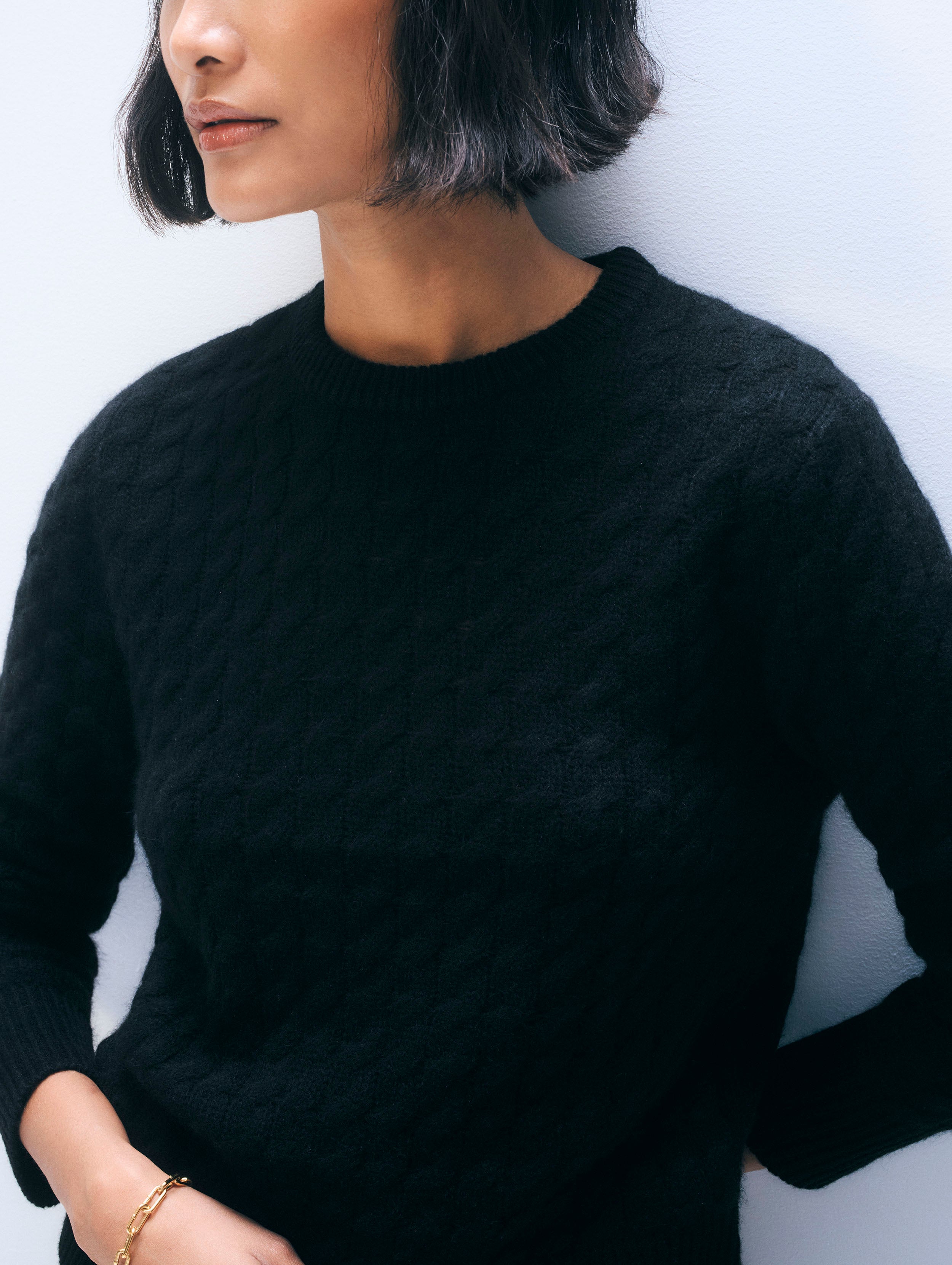 A light, yet supremely soft, crewneck sweater that's spun from 100% cashmere. Its unique cable layout was engineered in-house and adds a perfectly refined texture. This classic crewneck has a straight fit that lands at the high hip.