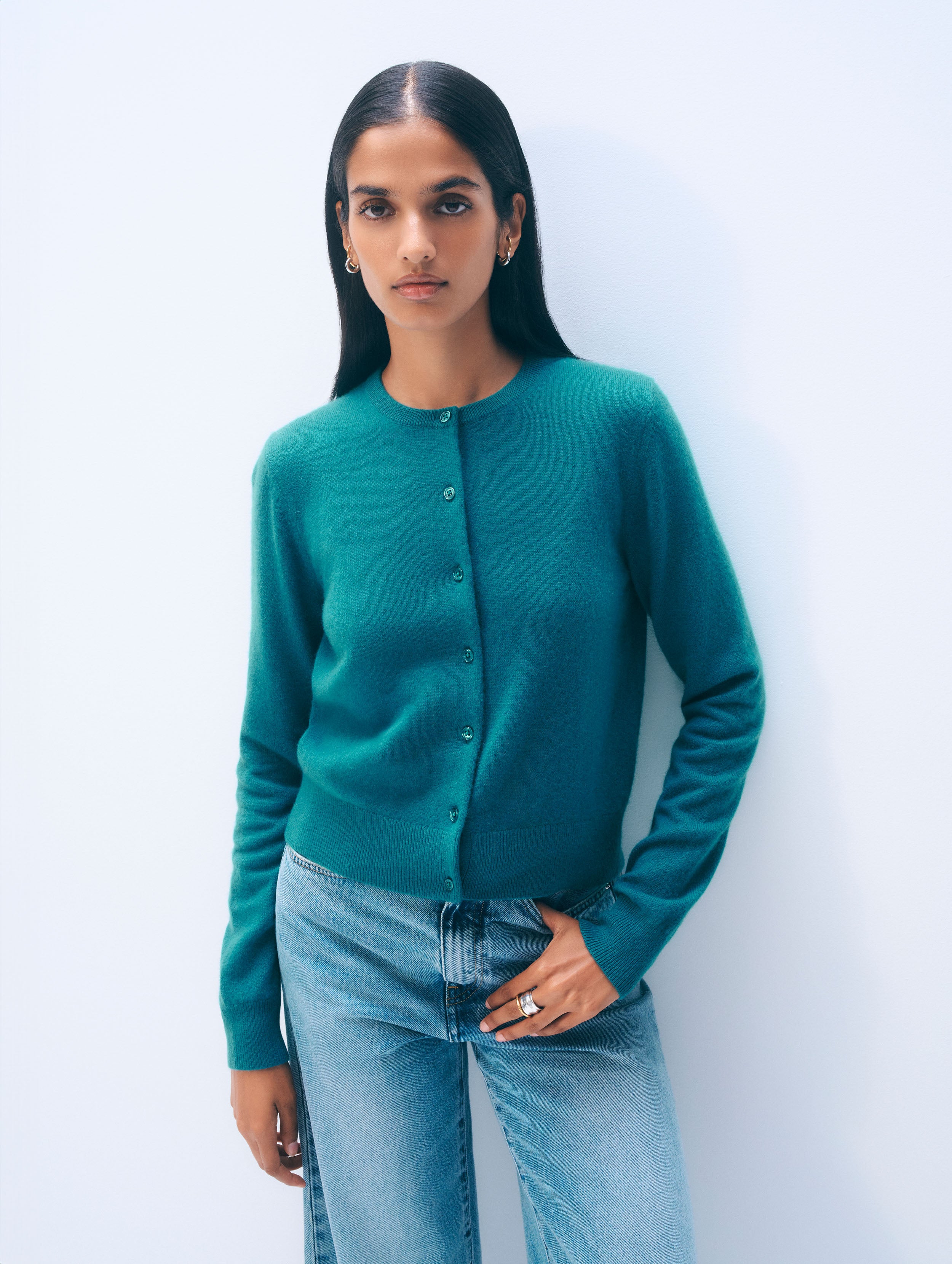 Cashmere Crewneck Cardigan | Deepwater Teal
