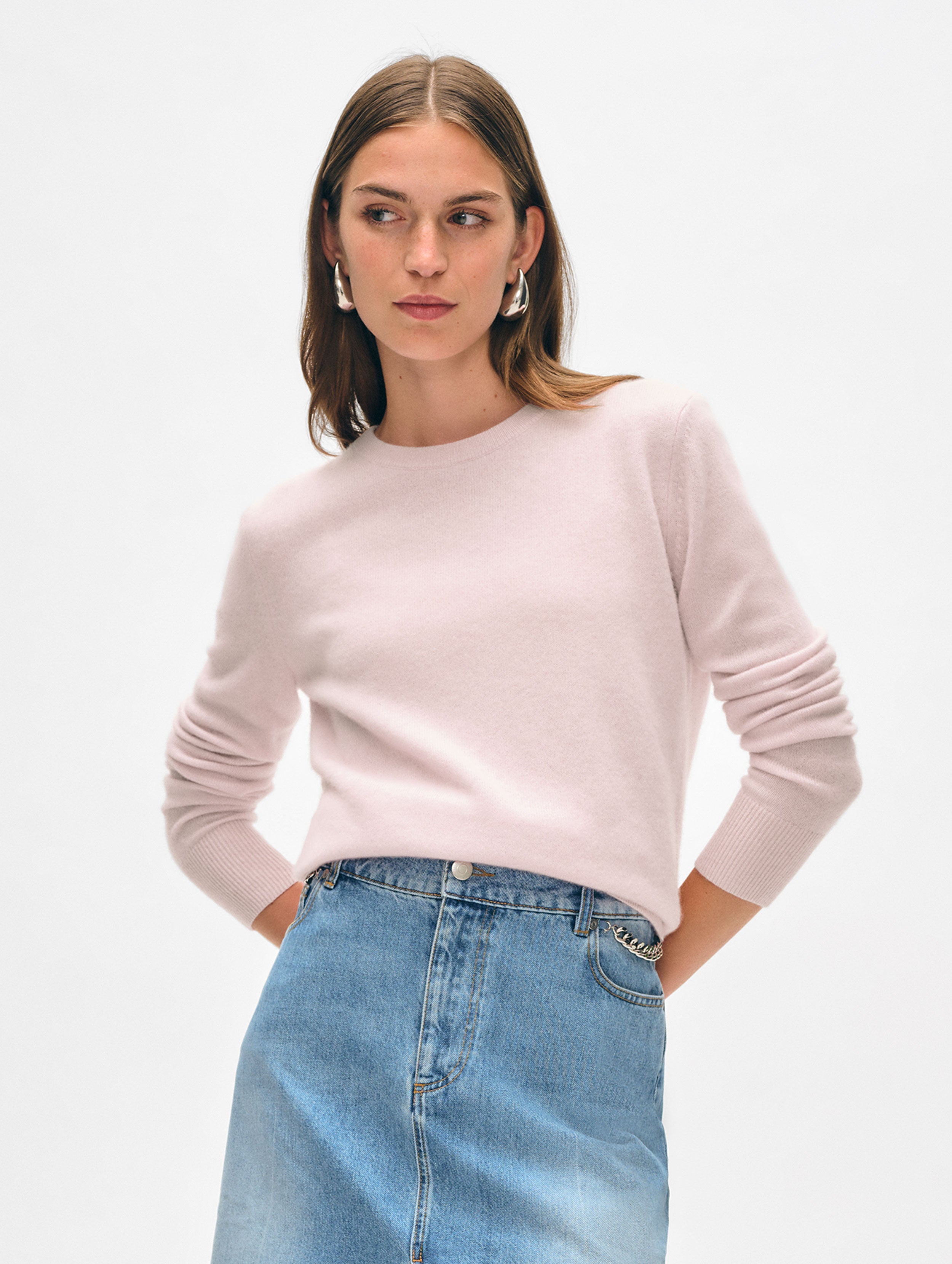 A wardrobe staple. Crafted from pure cashmere, this crewneck sweater features finely ribbed trims, subtle center-back detail, and a longer, relaxed fit. Size down for a more fitted look.