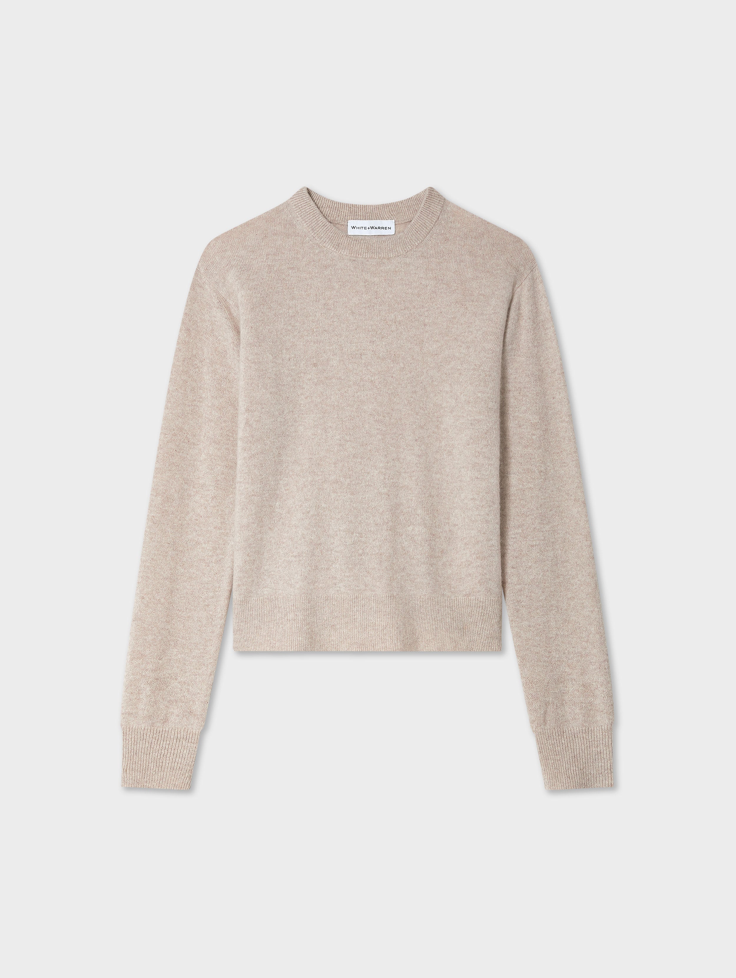 We're known for our Mongolian cashmere, made supremely soft through a custom wash technique. Select cashmere styles are finished with three hand-embroidered bar tacks at the back neck or side seam—an abstract "W" that signifies the White & Warren touch.