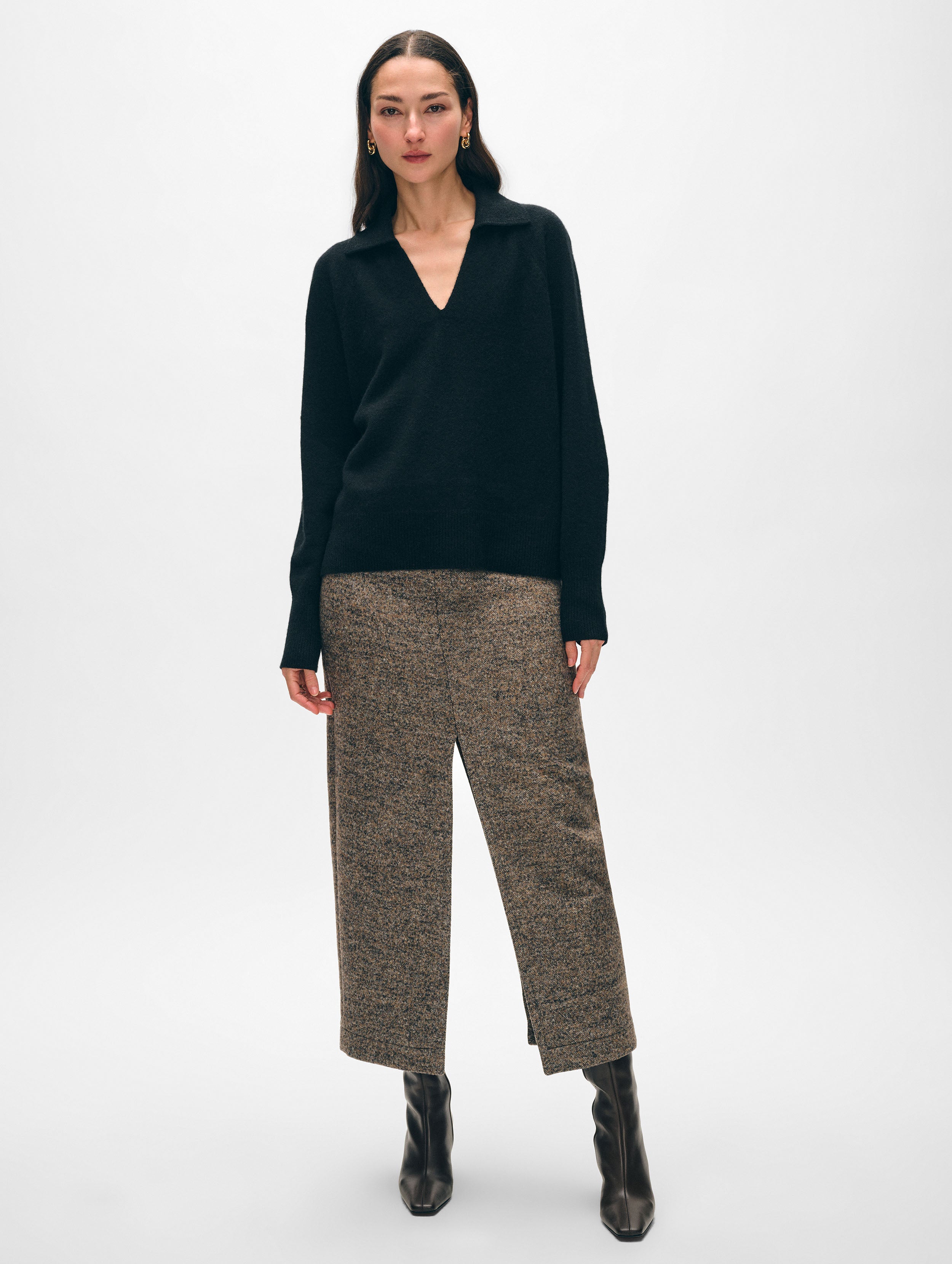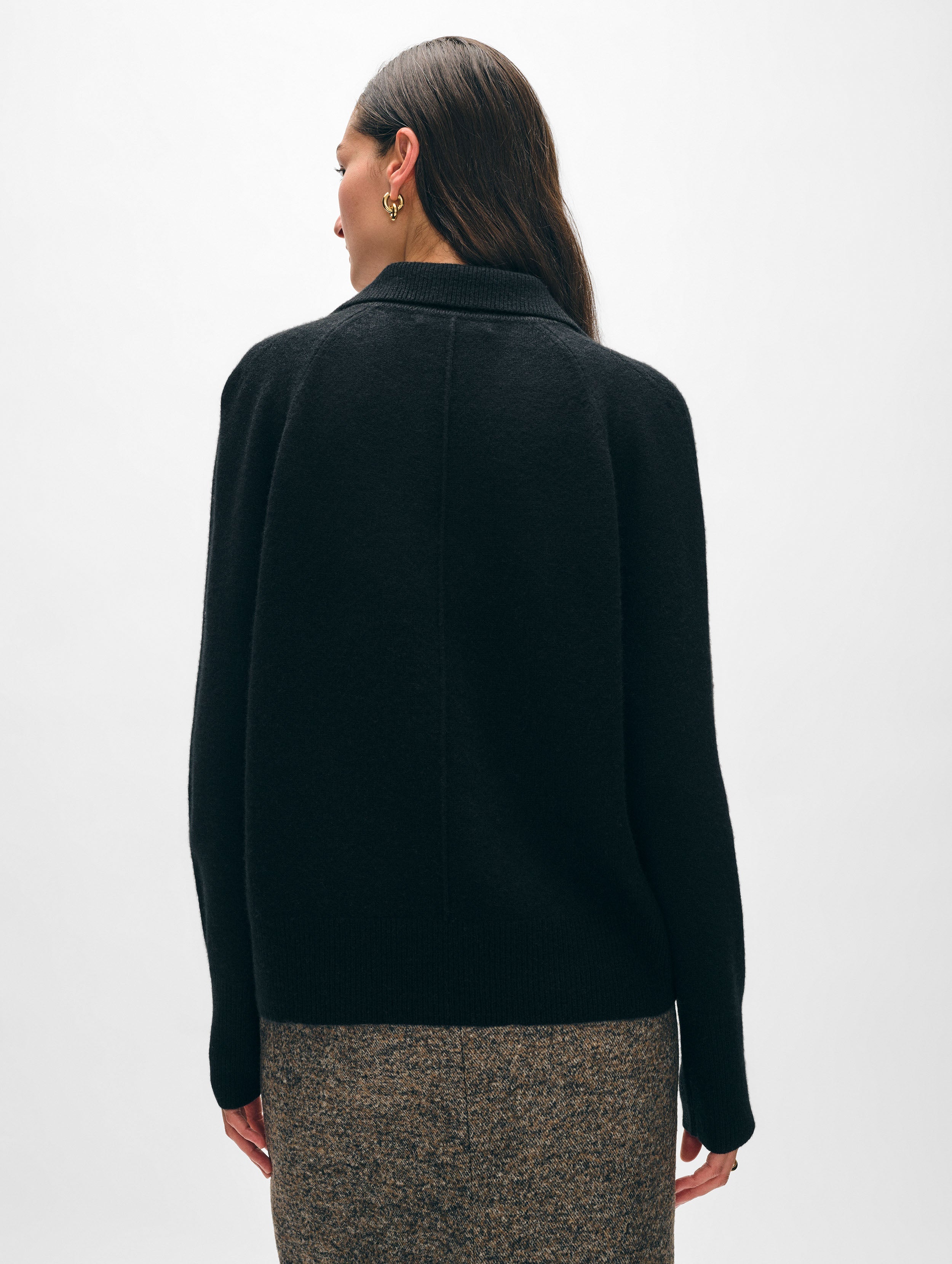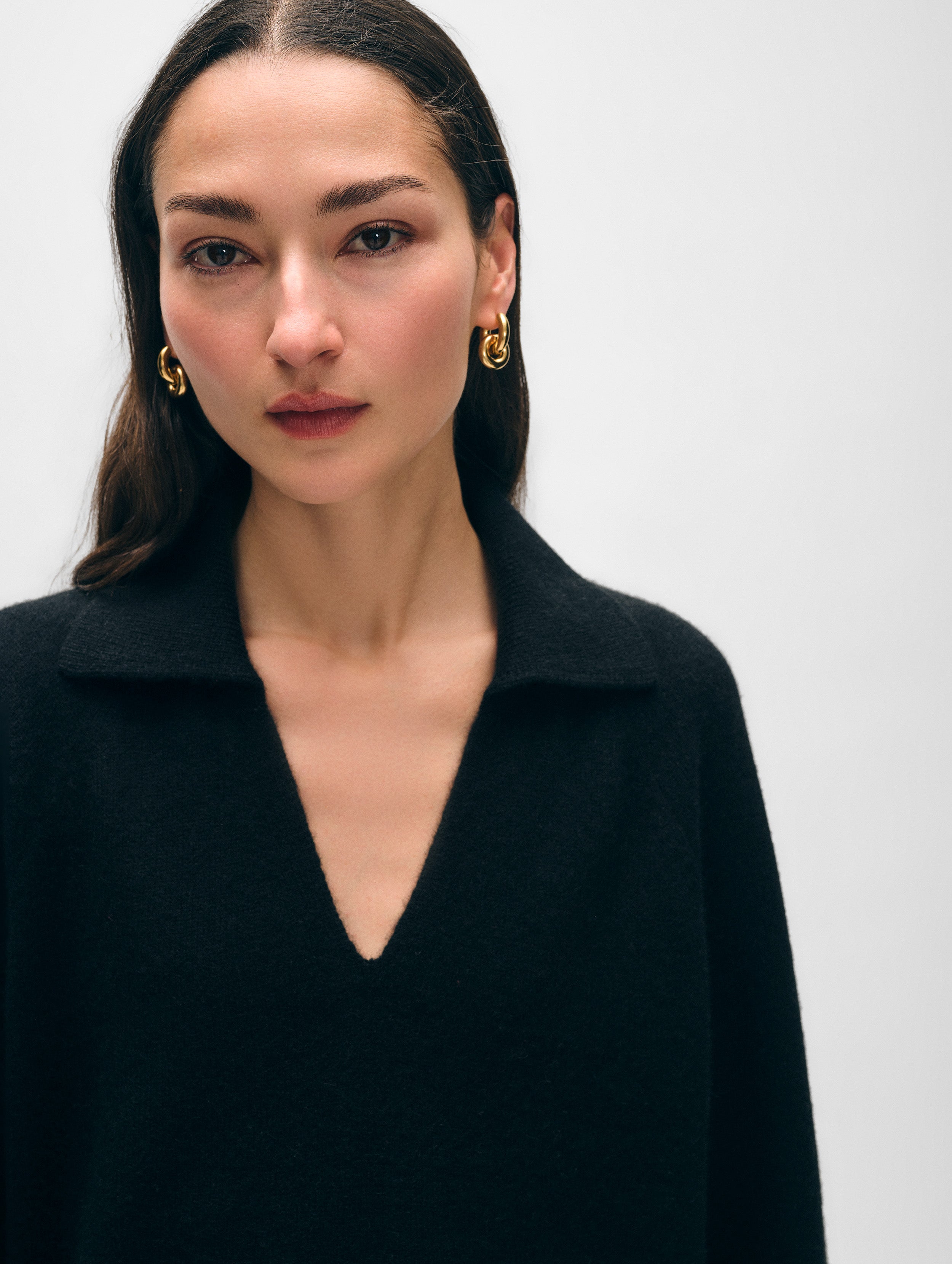 Knit from two ends of luxurious cashmere, this sweater offers a loftier feel than our classic cashmere. With a relaxed fit, open polo neckline, and low-hip length, it’s a versatile silhouette that can be styled with a front tuck or left loose. The elongated ribbed cuffs can be scrunched for a more tailored, stylish look.