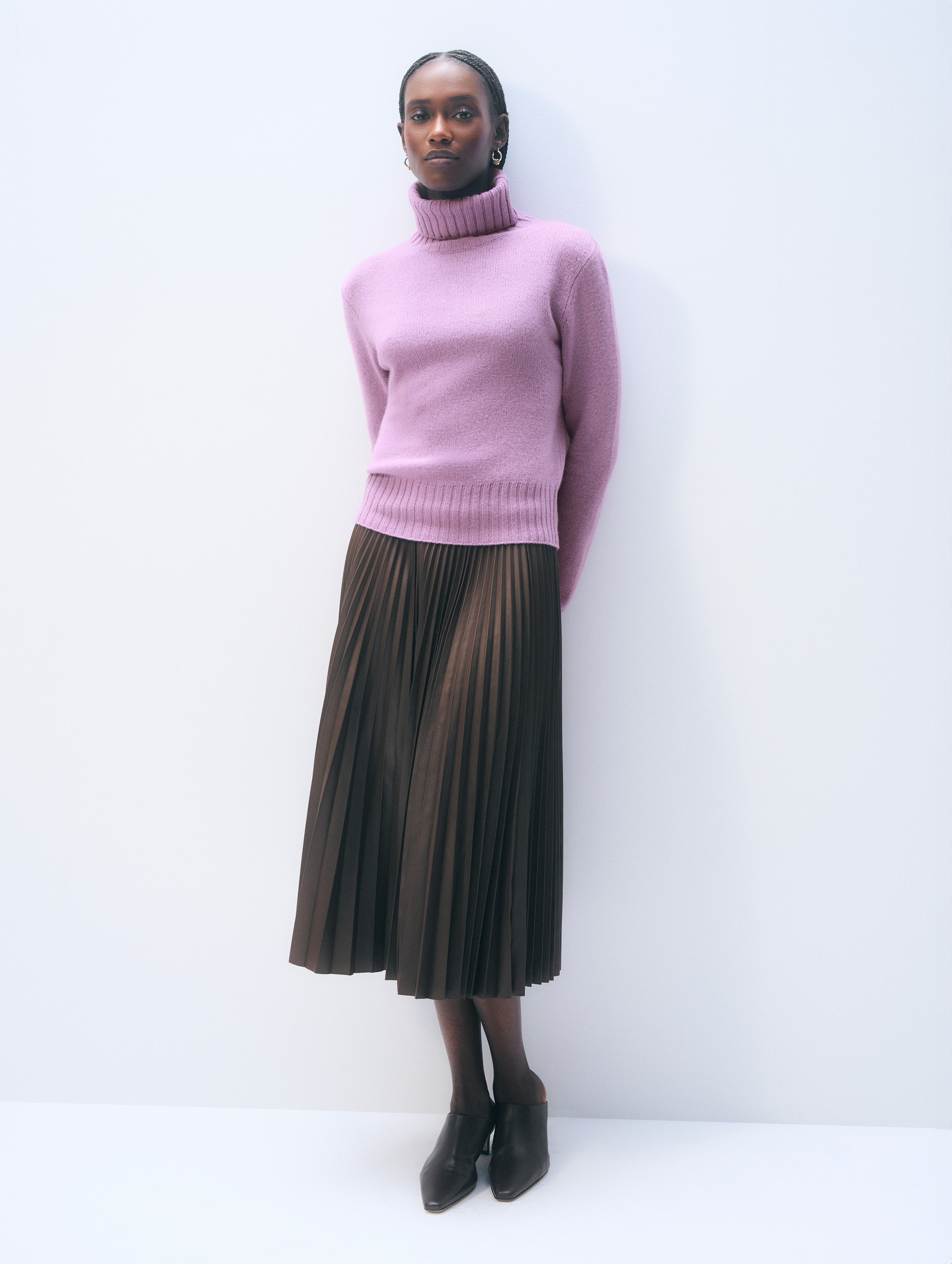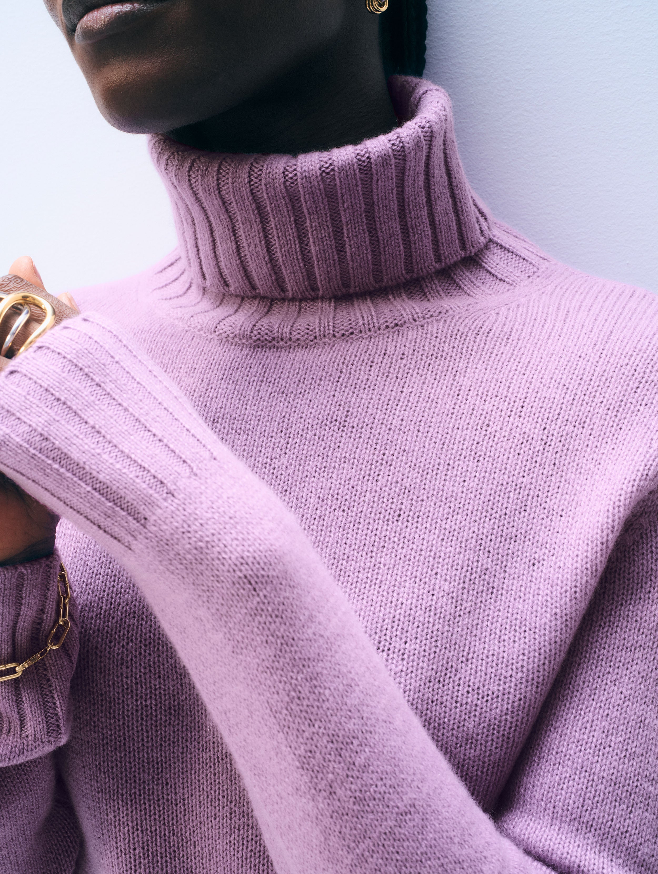 A high-design turtleneck crafted for everyday. Knit with featherweight cashmere in a classic weight, it boasts a subtly shrunken silhouette with a vintage '90s appeal. Handcrafted tacking details at the cuffs lend an artisanal finish to this timeless piece.