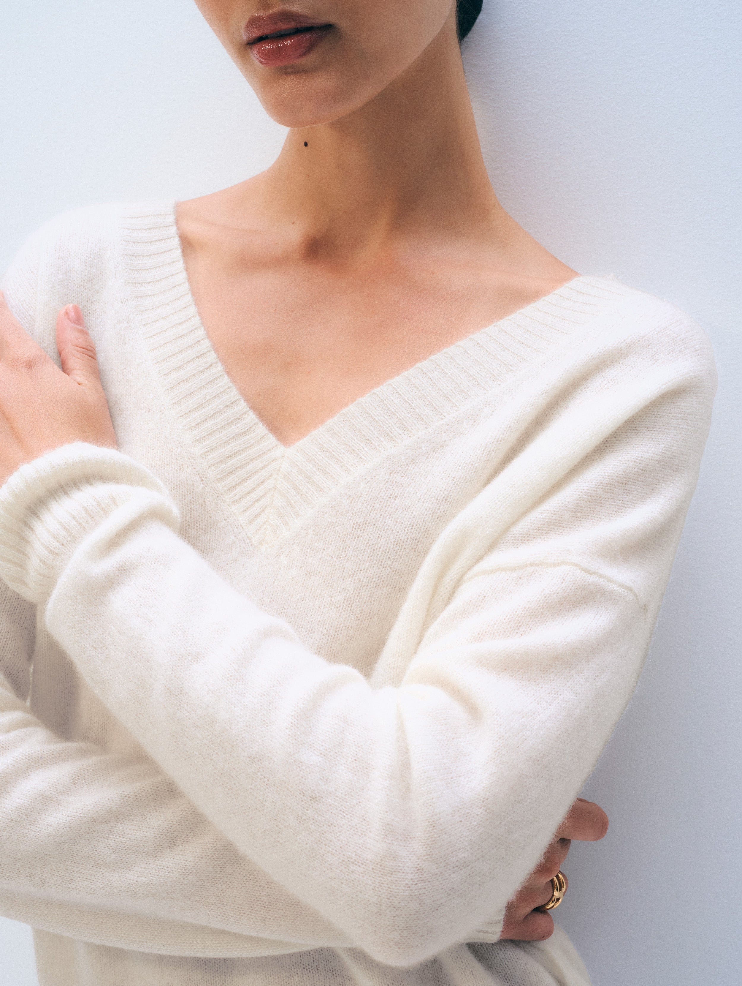 The Cashmere Featherweight V Neck is knit from 100% cashmere in our cloud-like, featherweight technique. This breathable style is relaxed with a longer length, transitioning seamlessly through the seasons.