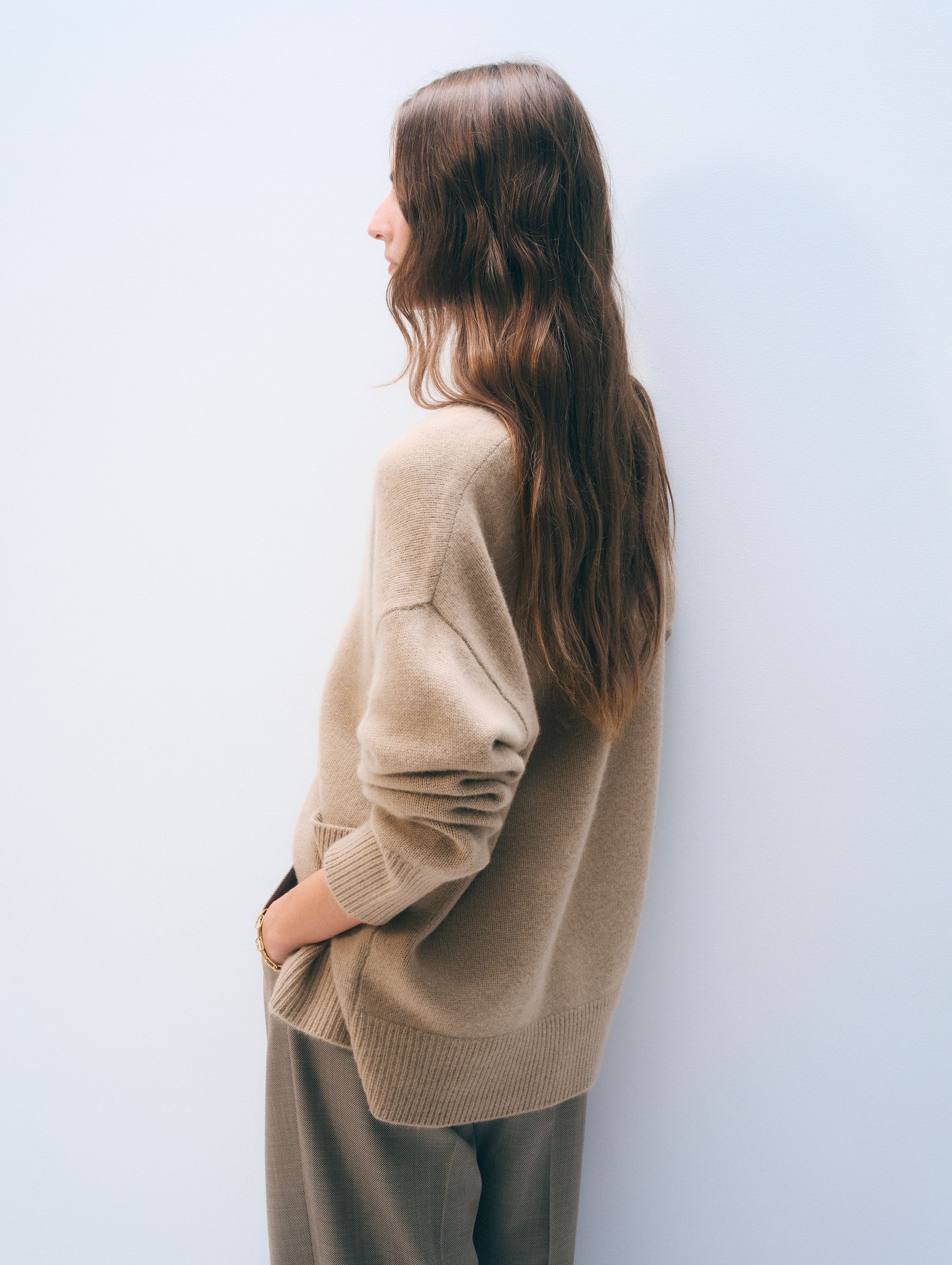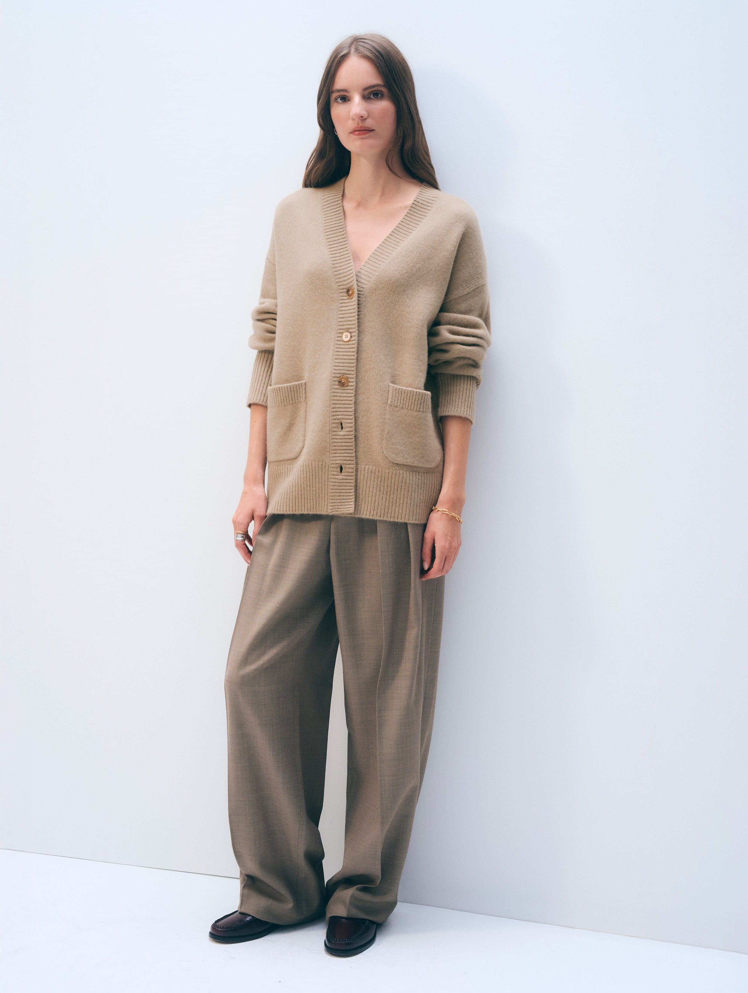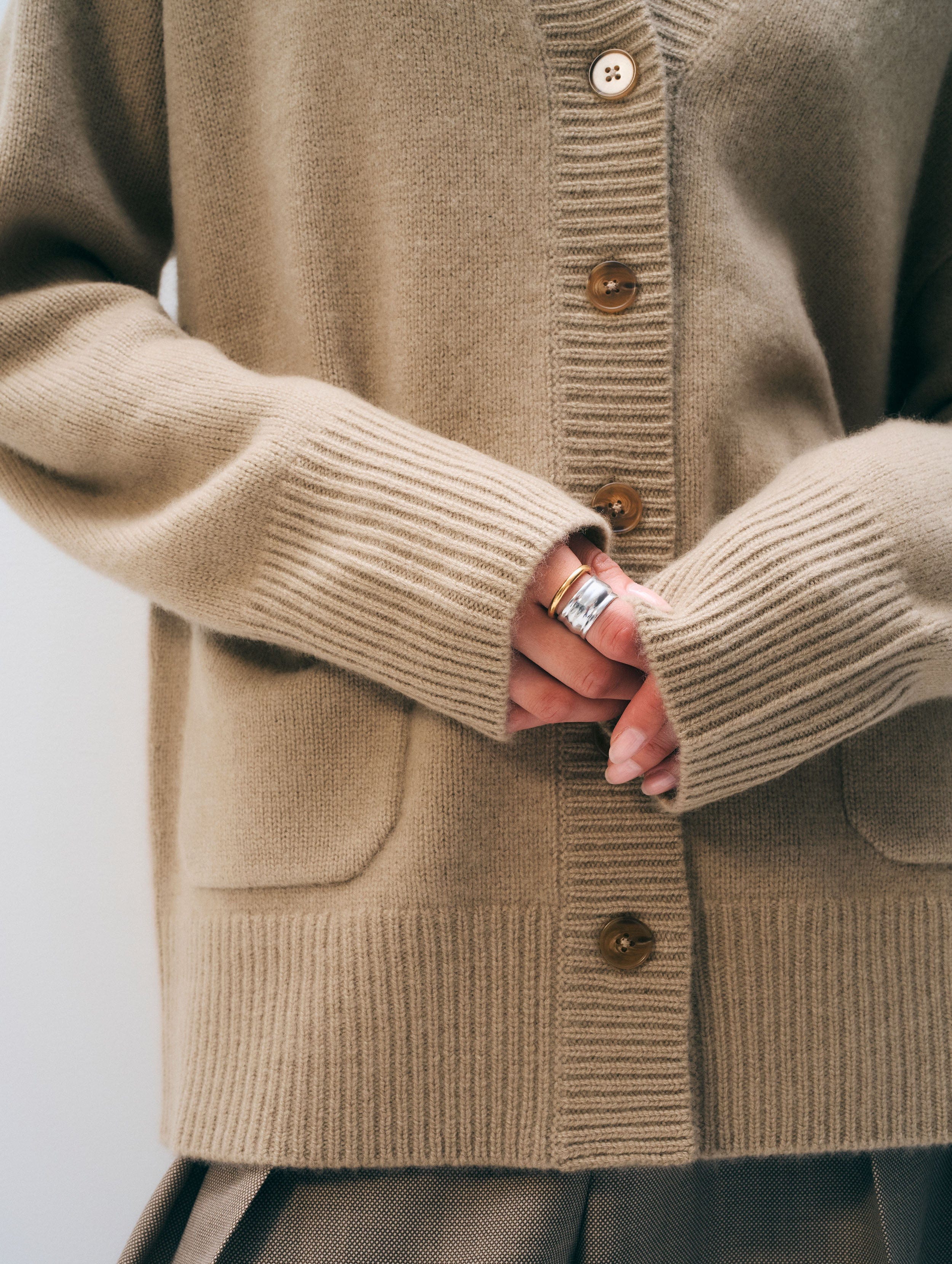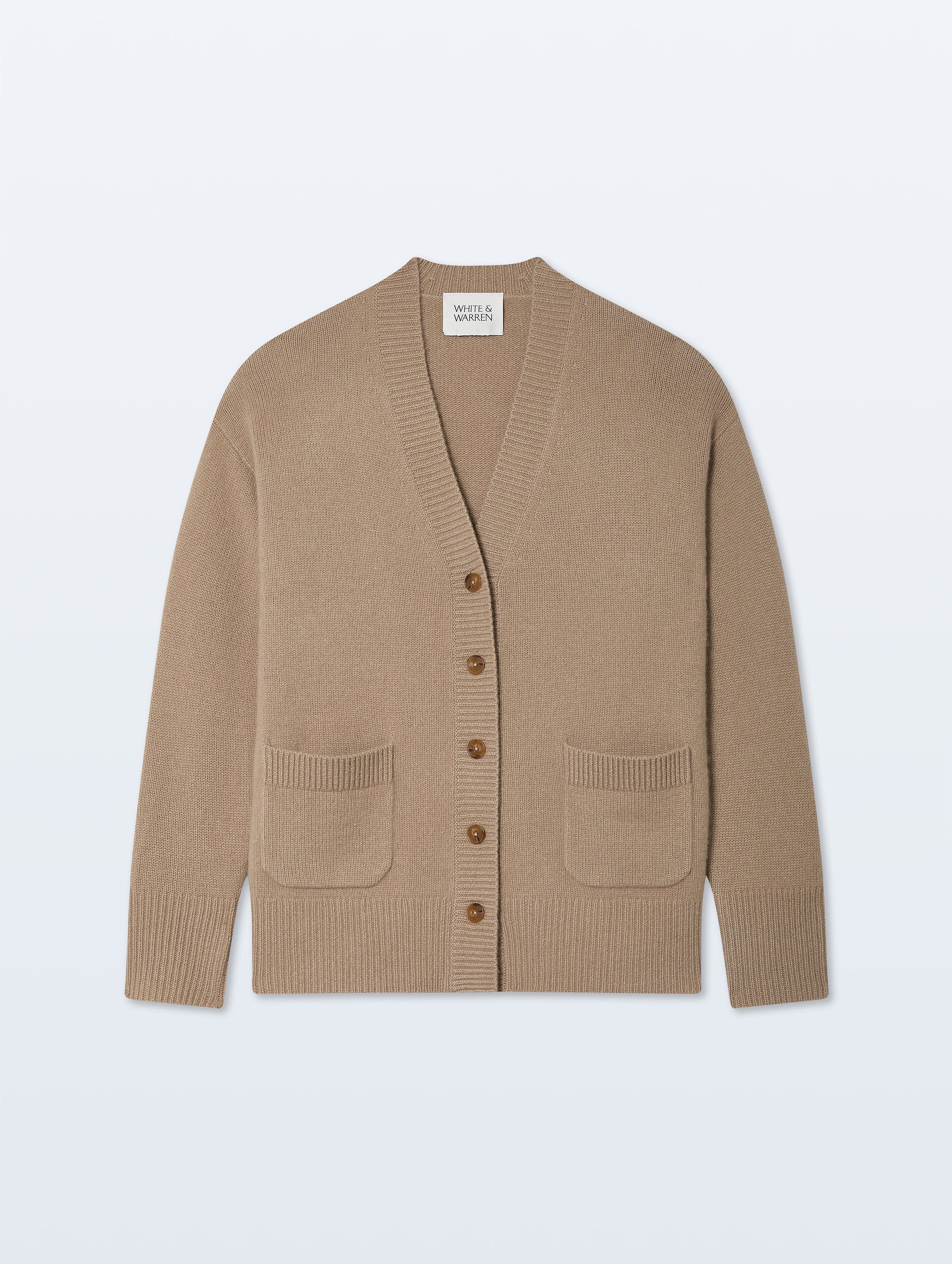 Our luxe knitwear is made from the highest quality cashmere, which ensures each piece fits perfectly and will remain in your closet for years. This boyfriend-style cardigan is crafted from three ends of cashmere that are insulating and drapes beautifully. Wide, rib trims and handy patch pockets complete the minimal design. Reach for it in place of a jacket for morning coffee runs or cold days in the office.
