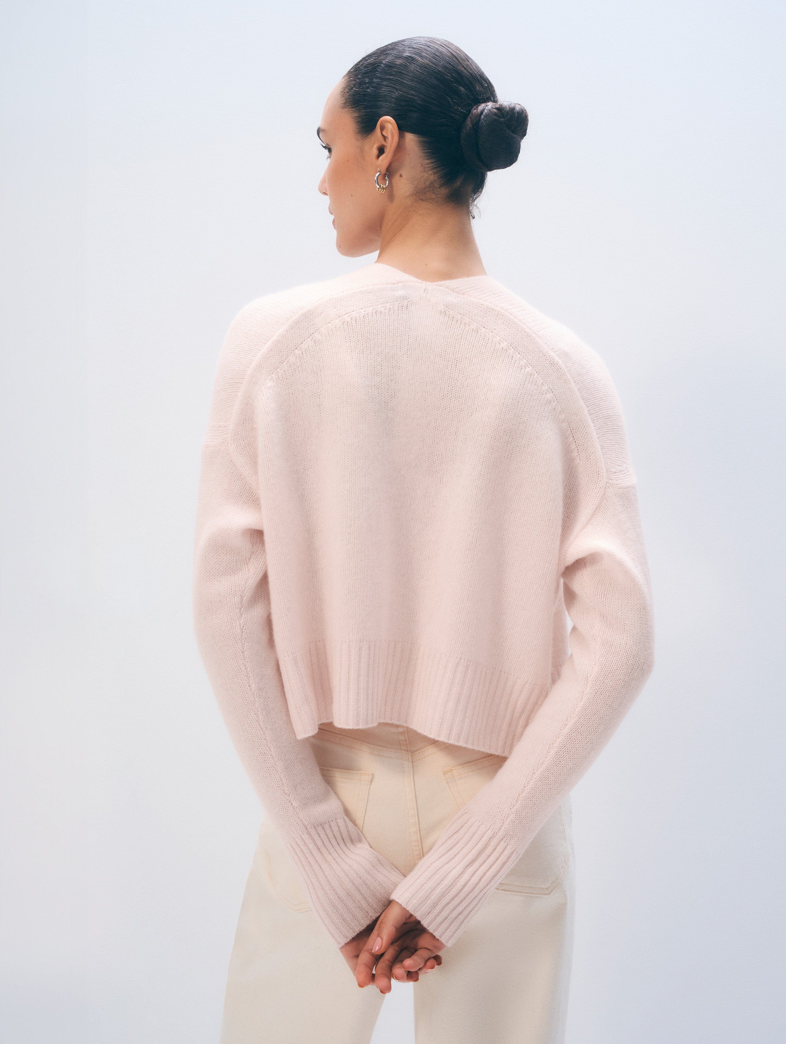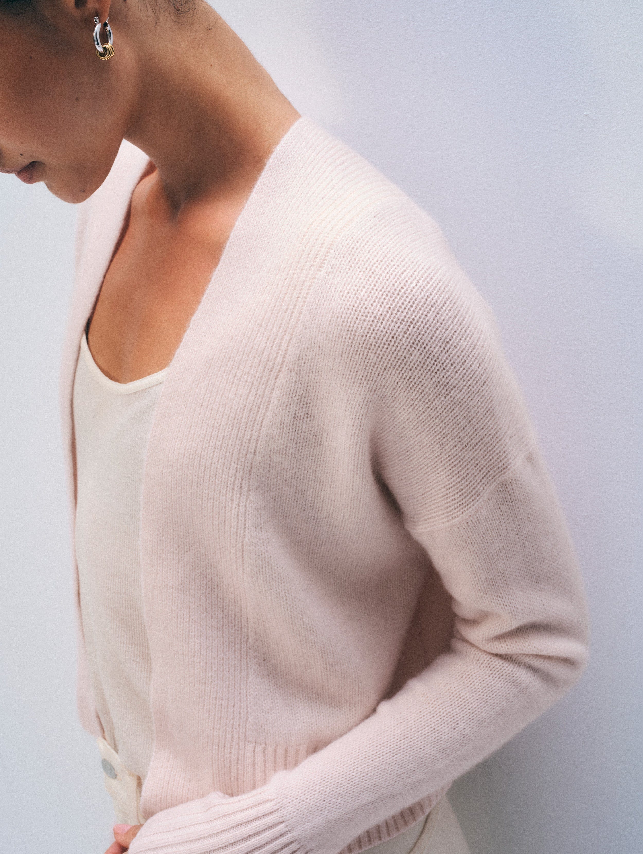 Meet your new favorite layer: the Cashmere Open-Front Cardigan. Crafted from featherweight two-ply cashmere, it delivers luxurious softness and warmth without bulk. A shrunken fit that hits at the mid-hip creates a sleek and flattering silhouette, while wider rib finishes at the cuffs and hem add a refined, textured touch. Versatile and chic, the open-front design ensures effortless styling over tees, dresses, or blouses.