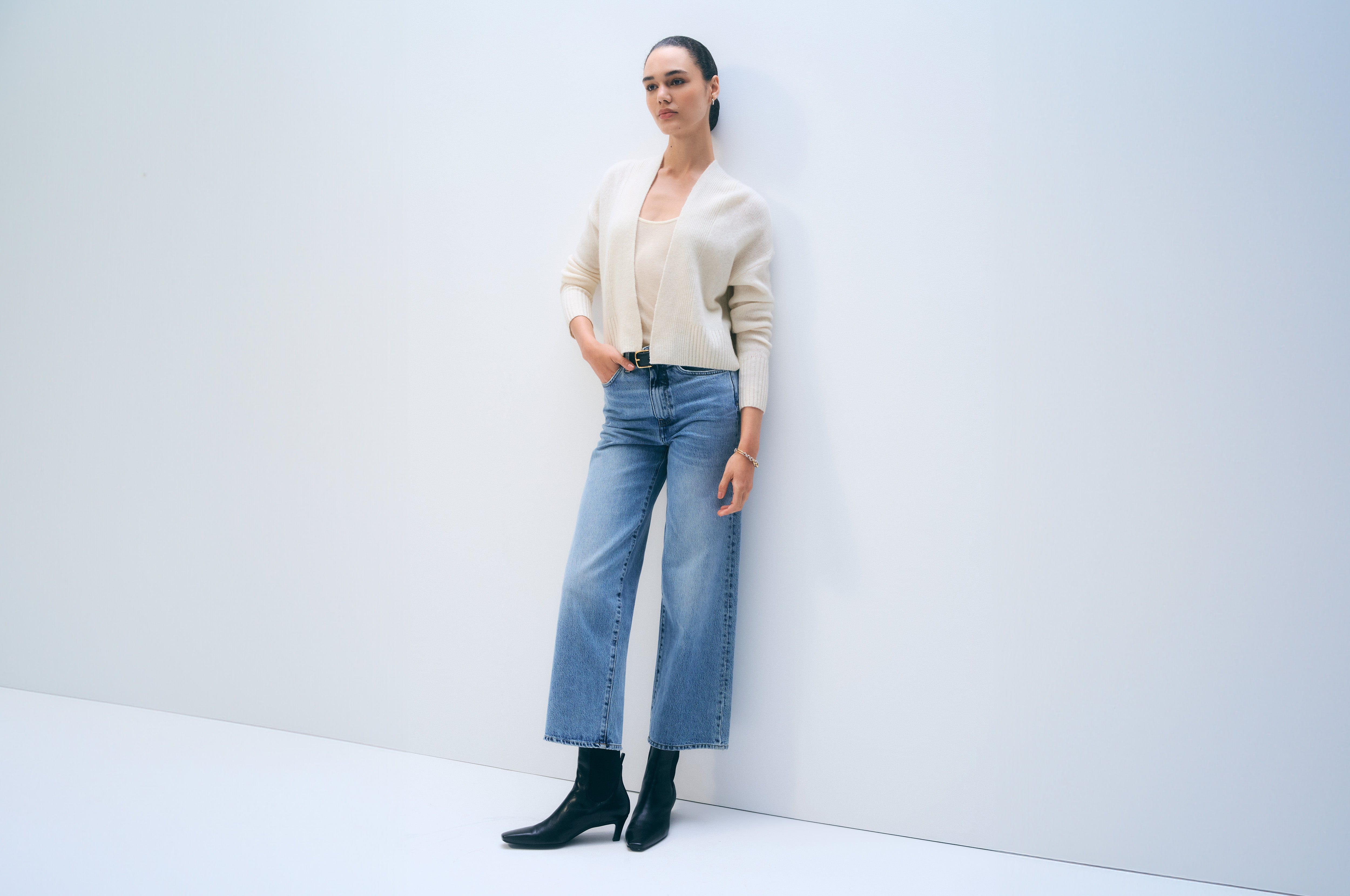 Meet your new favorite layer: the Cashmere Open-Front Cardigan. Crafted from featherweight two-ply cashmere, it delivers luxurious softness and warmth without bulk. A shrunken fit that hits at the mid-hip creates a sleek and flattering silhouette, while wider rib finishes at the cuffs and hem add a refined, textured touch. Versatile and chic, the open-front design ensures effortless styling over tees, dresses, or blouses.