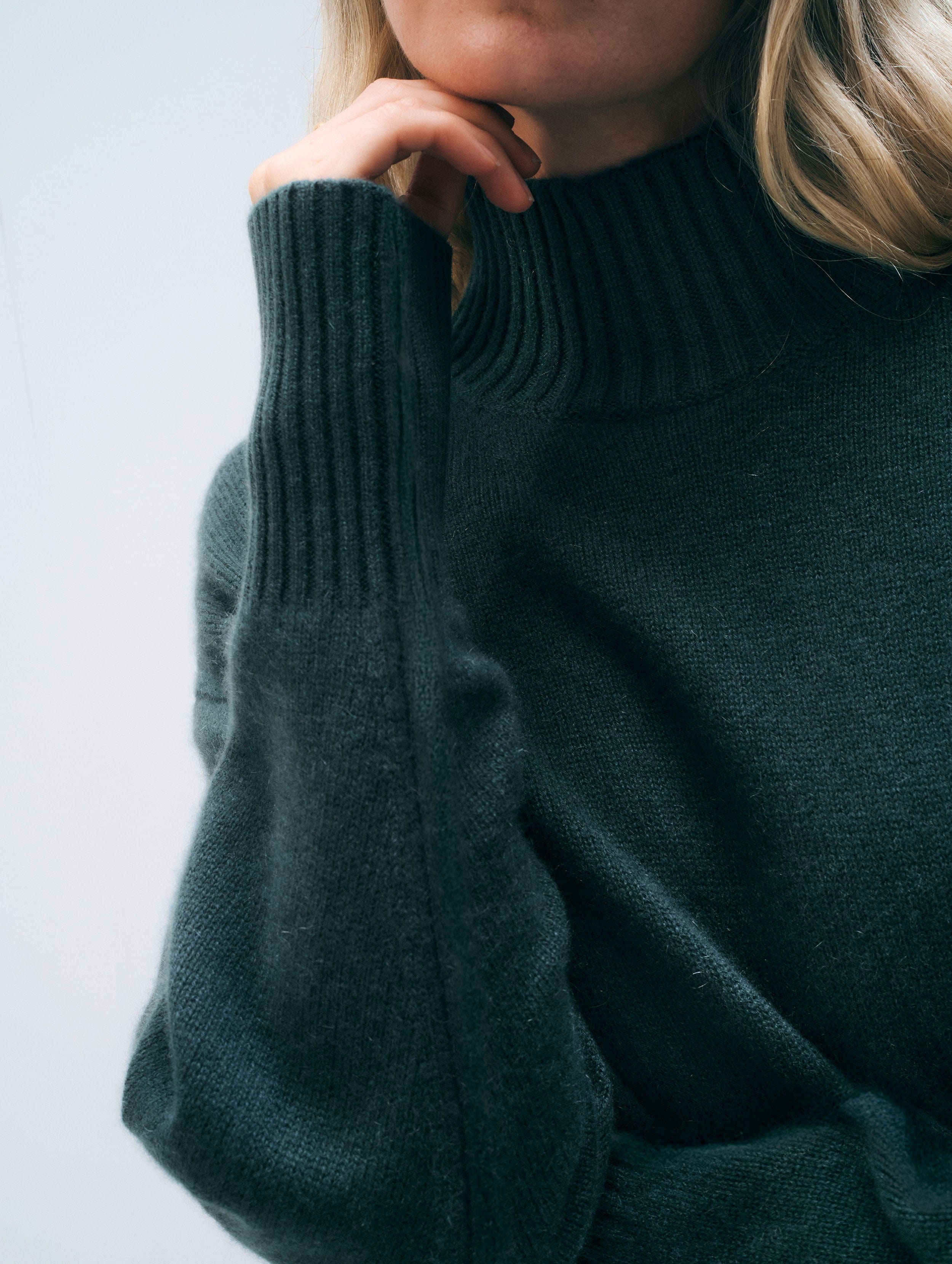 A sweater to live in. Oversized with a fluid drape, this standneck looks effortless yet feels exceptional, enveloping the body in cozy, 100% cashmere.