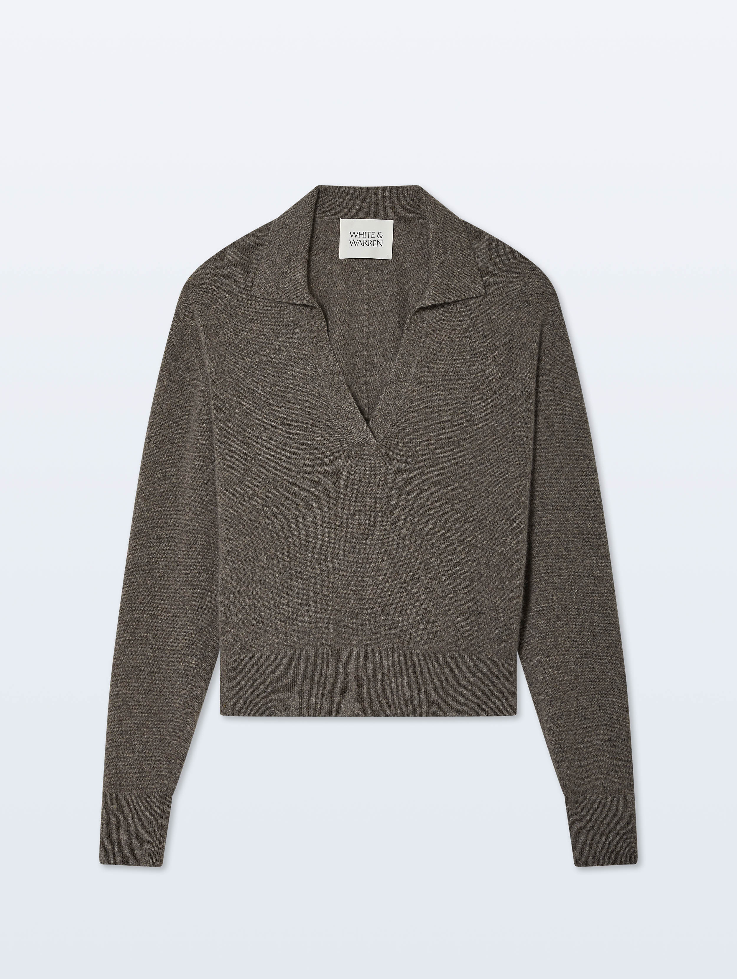 Cashmere Long-Sleeved Polo | Ashen Brown