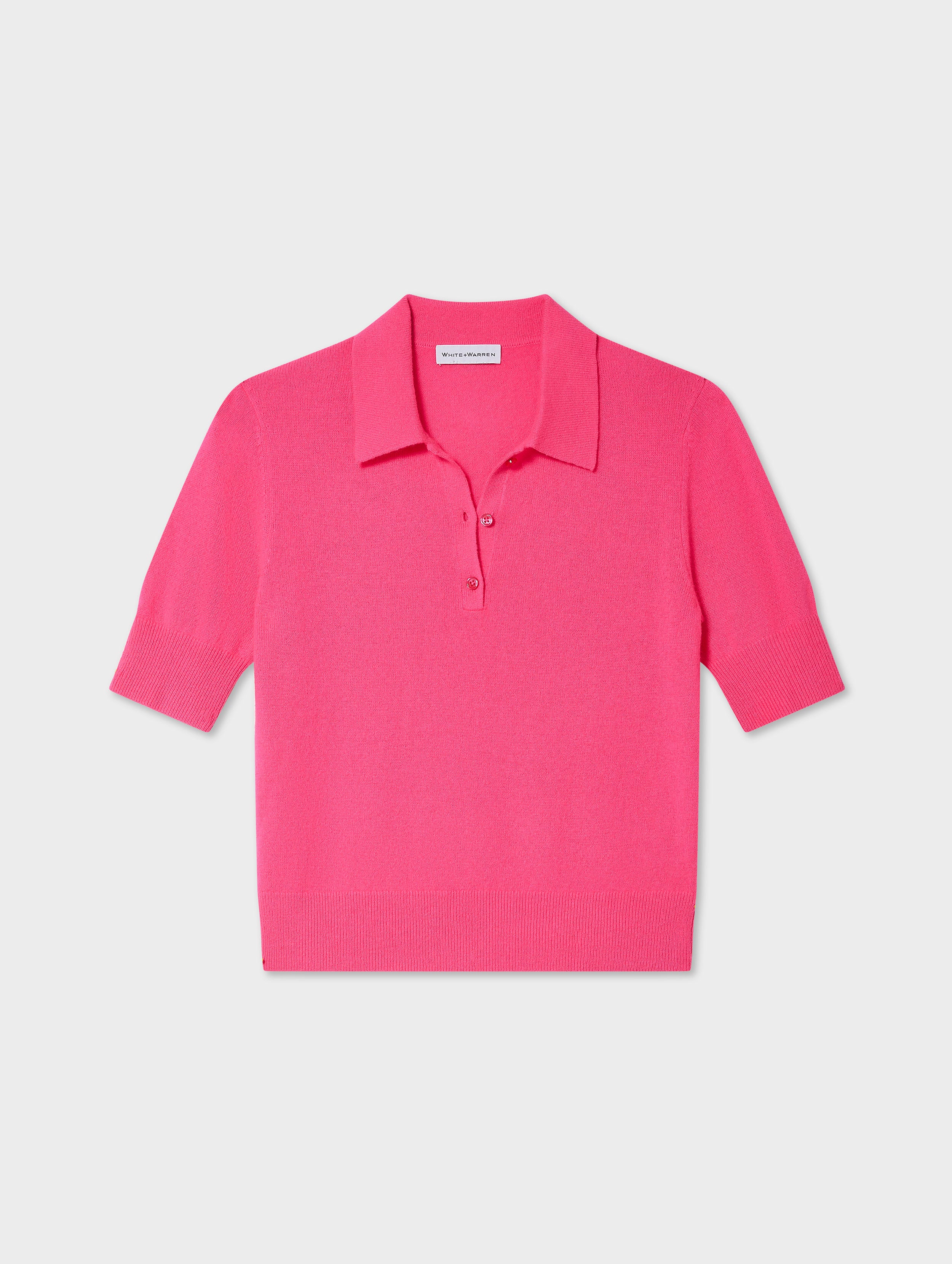 A crisp Cashmere Polo Top for everyday luxury. Designed with a tailored fit and subtle stretch, this button-front top with a collared neckline is offered in retro stripes and vibrant solids.
