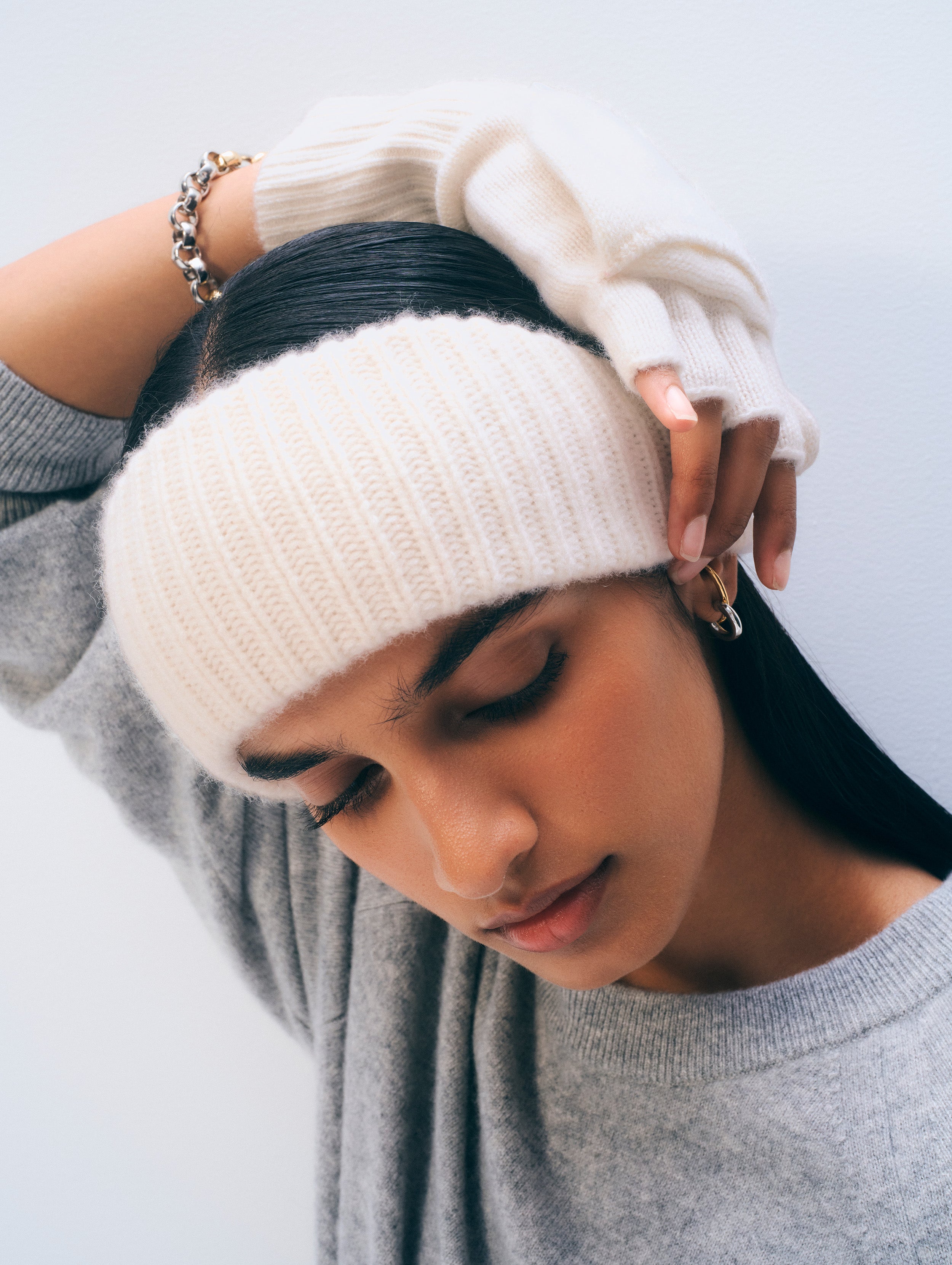A ribbed headband with an après-ski aesthetic. Knit from 100% cashmere with an elasticized back, it’s a cozy and functional accent to cold-weather looks.