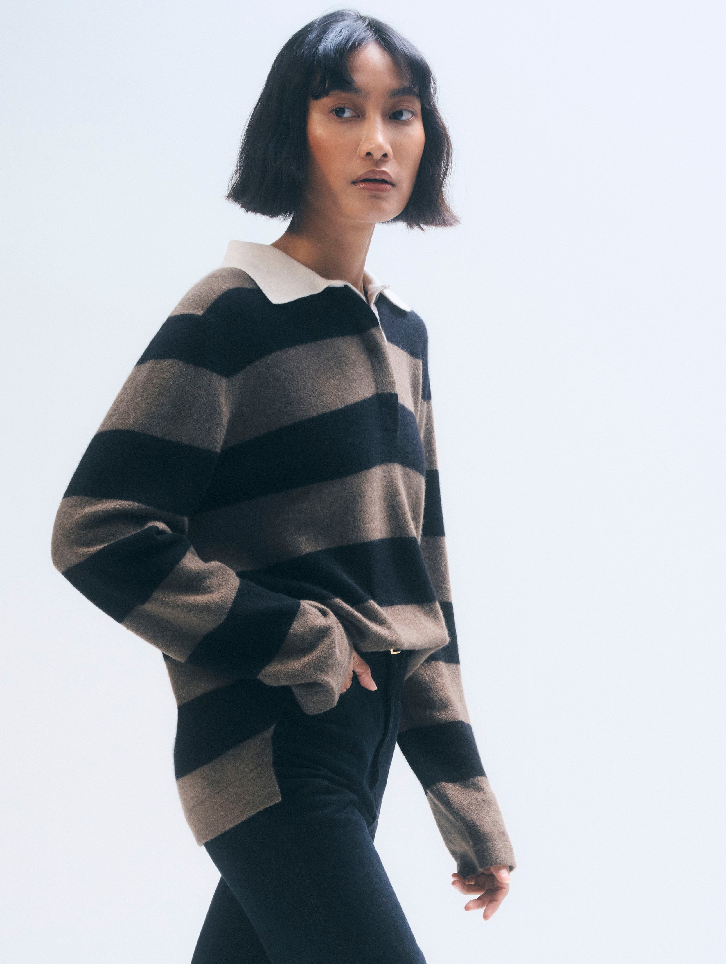 Cashmere Rugby Stripe Polo | Black/Dachshund