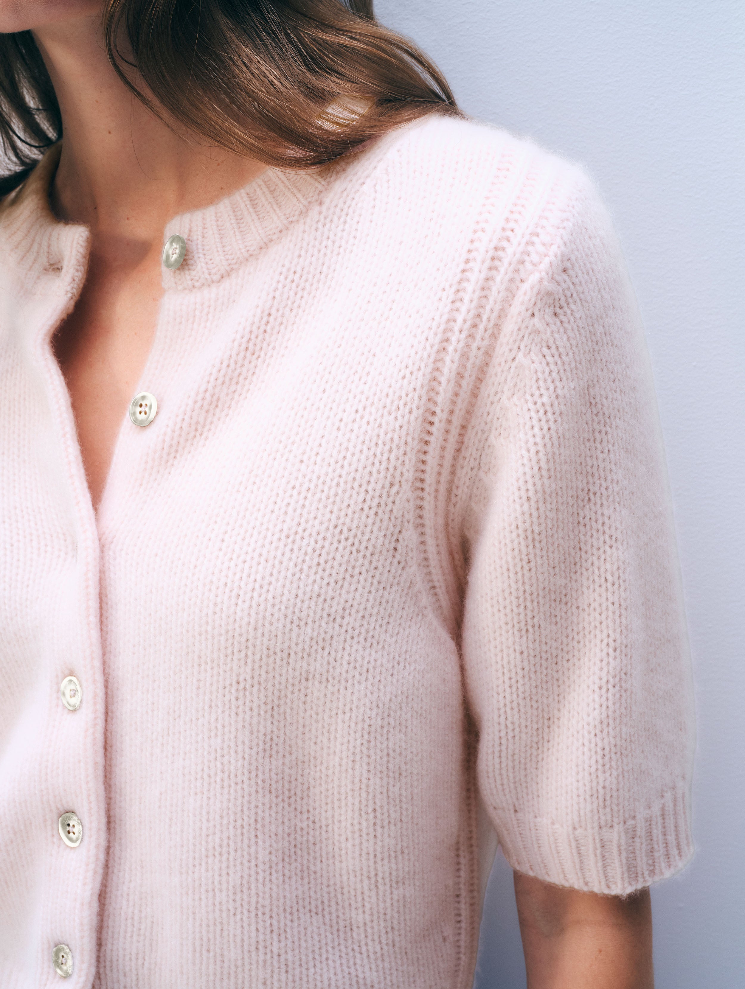 Cashmere Short Sleeve Cardigan | Pink Sand