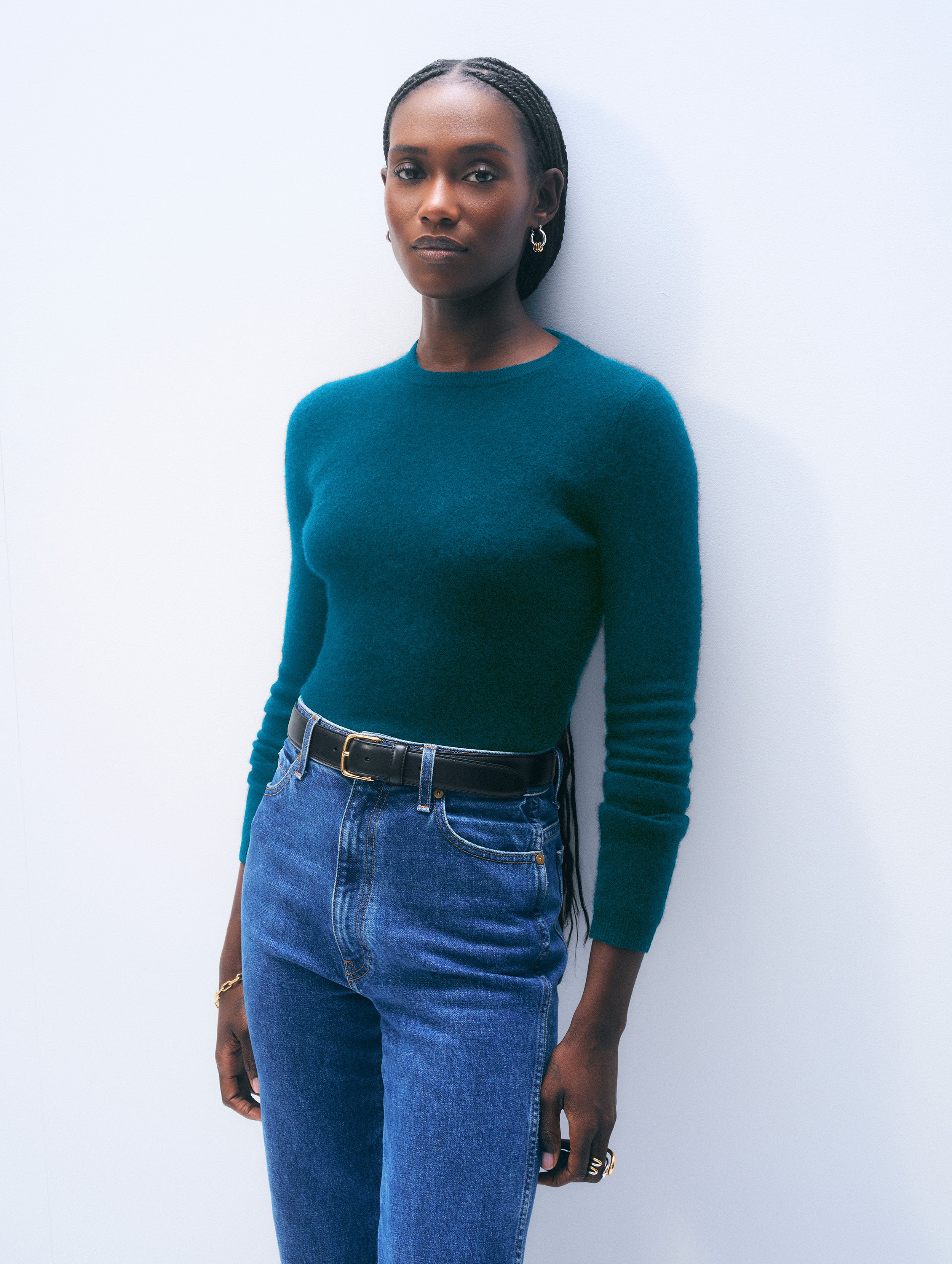 Cashmere Slim Stretch Crewneck | Deepwater Teal
