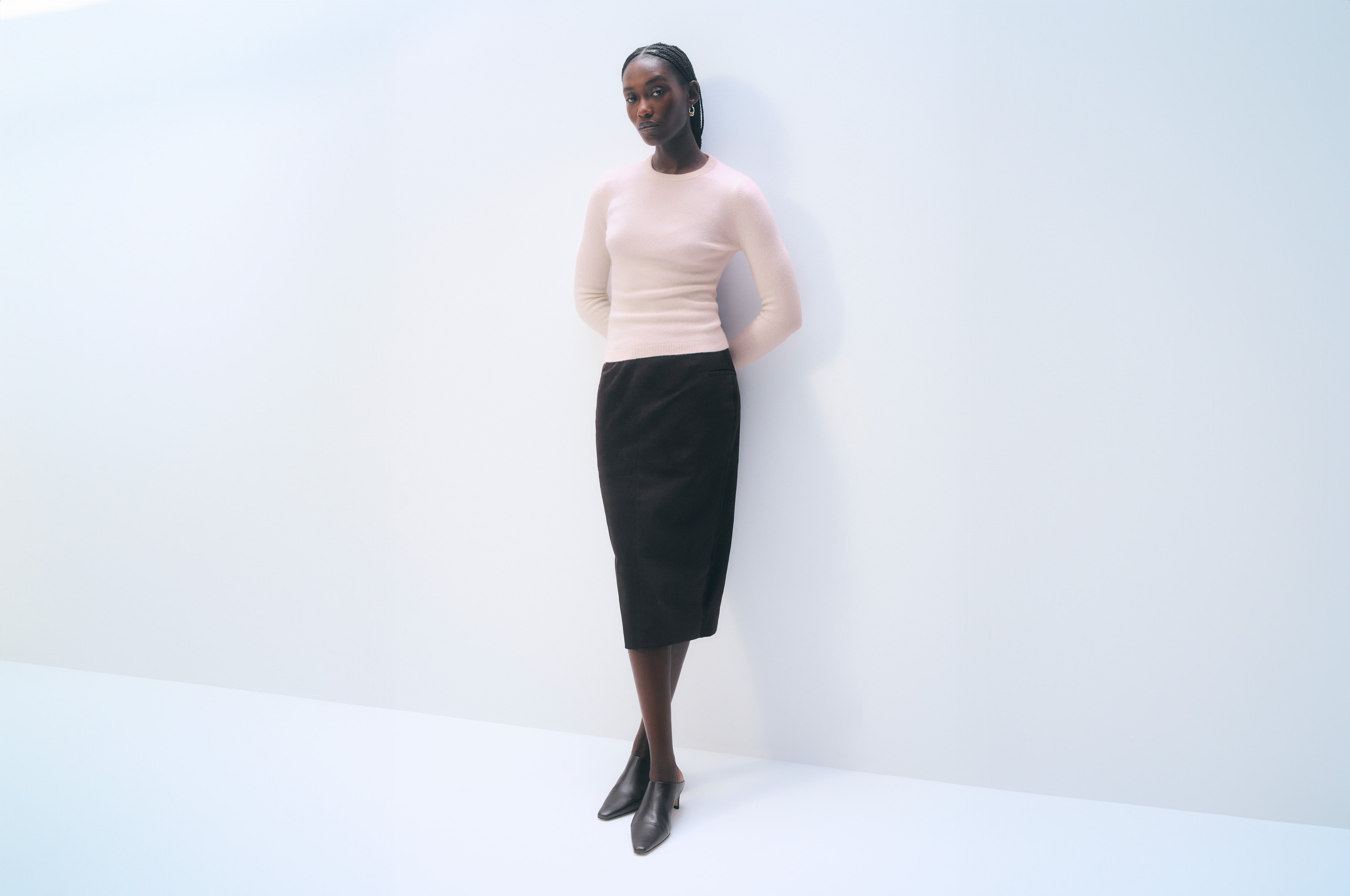We're known for our Mongolian cashmere, made supremely soft through a custom wash technique. Select cashmere styles are finished with three hand-embroidered bar tacks at the back neck or side seam—an abstract "W" that signifies the White & Warren touch.
