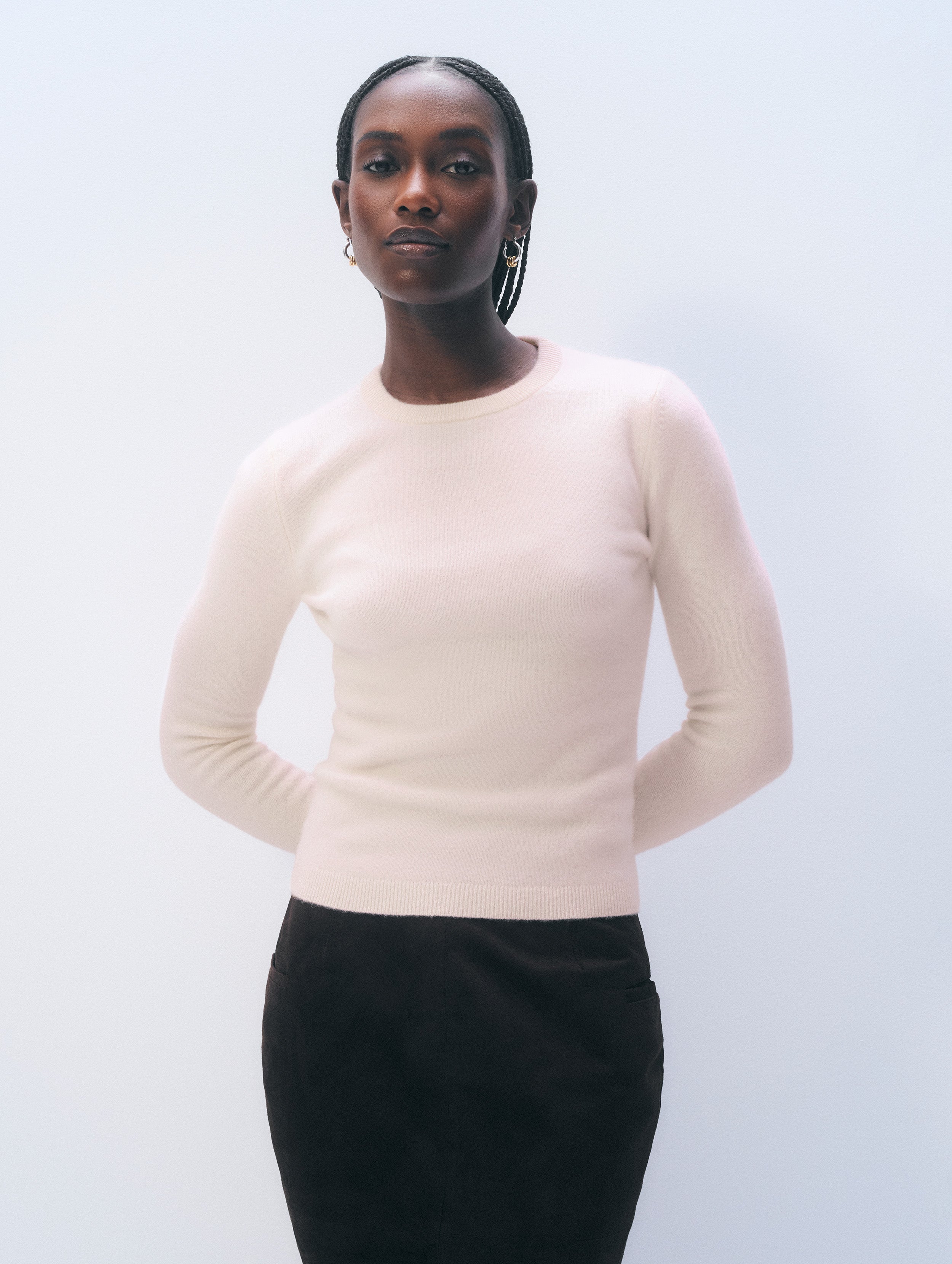 Cashmere Slim Stretch Crewneck | Pink Sand