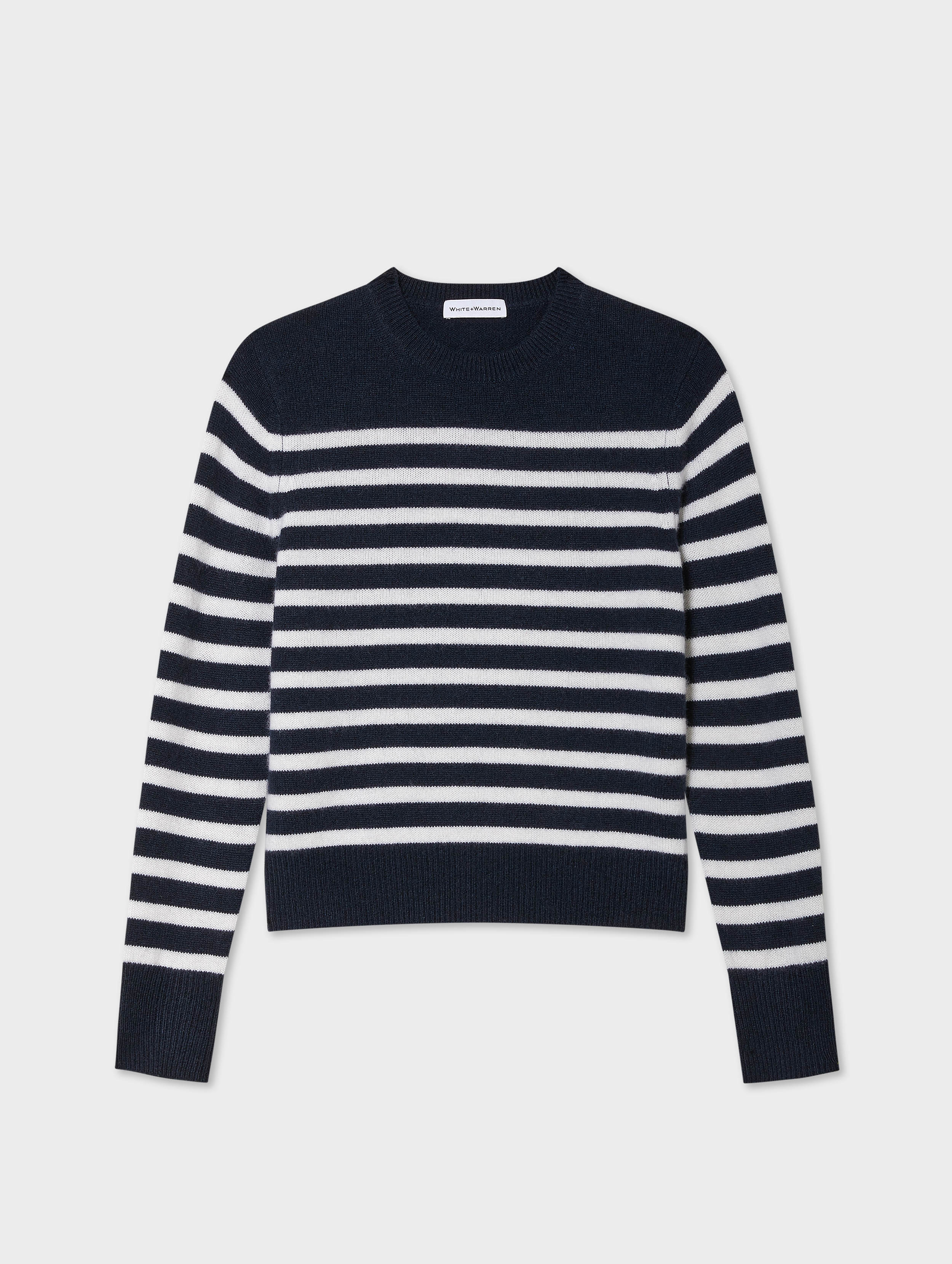 Cashmere Striped Crewneck | Deep Navy/Soft White