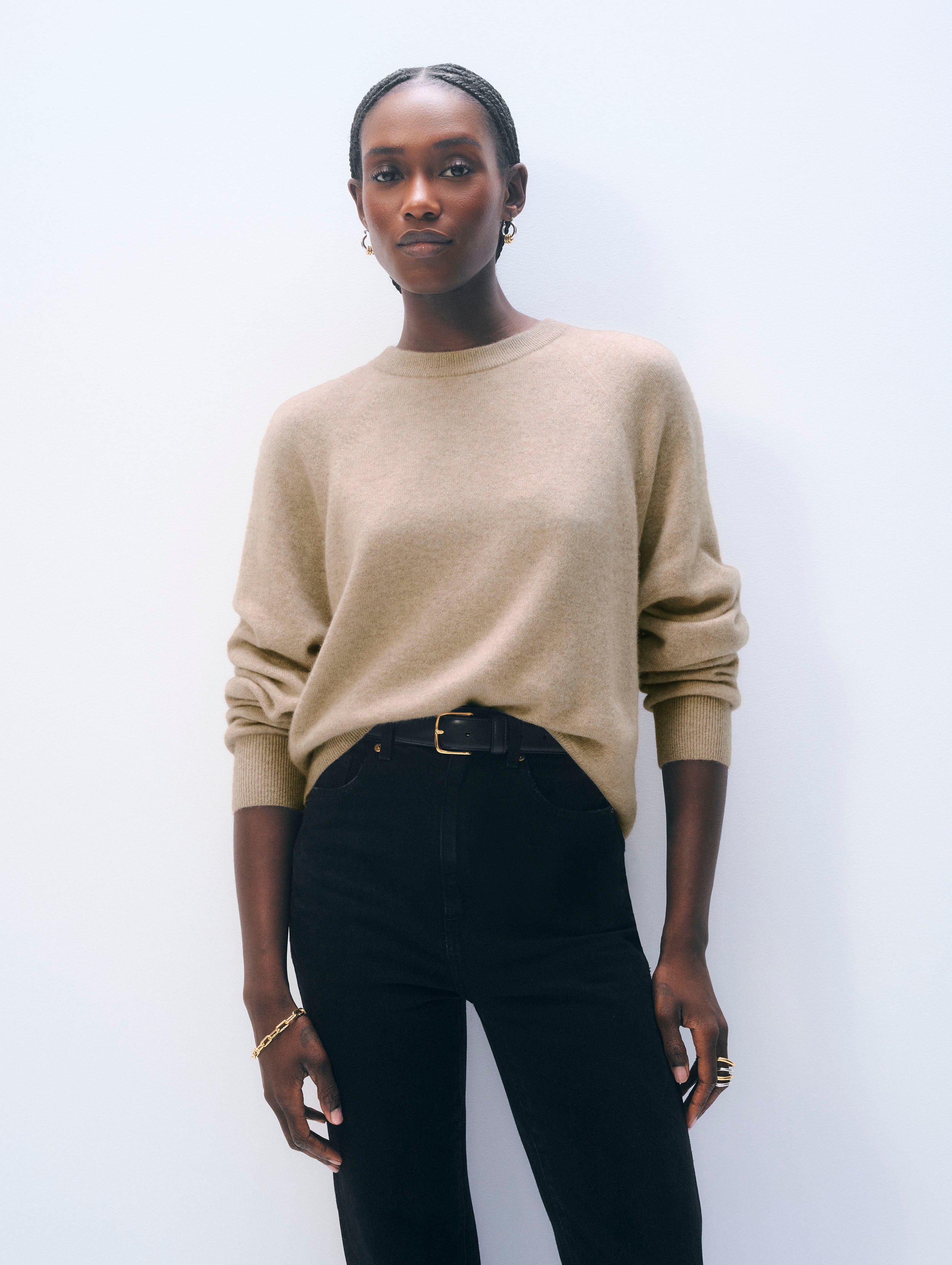 A sweatshirt silhouette reimagined in pure cashmere. Crafted in a jersey stitch with raglan sleeves, its relaxed neckline and easy body balance comfort with refinement.
