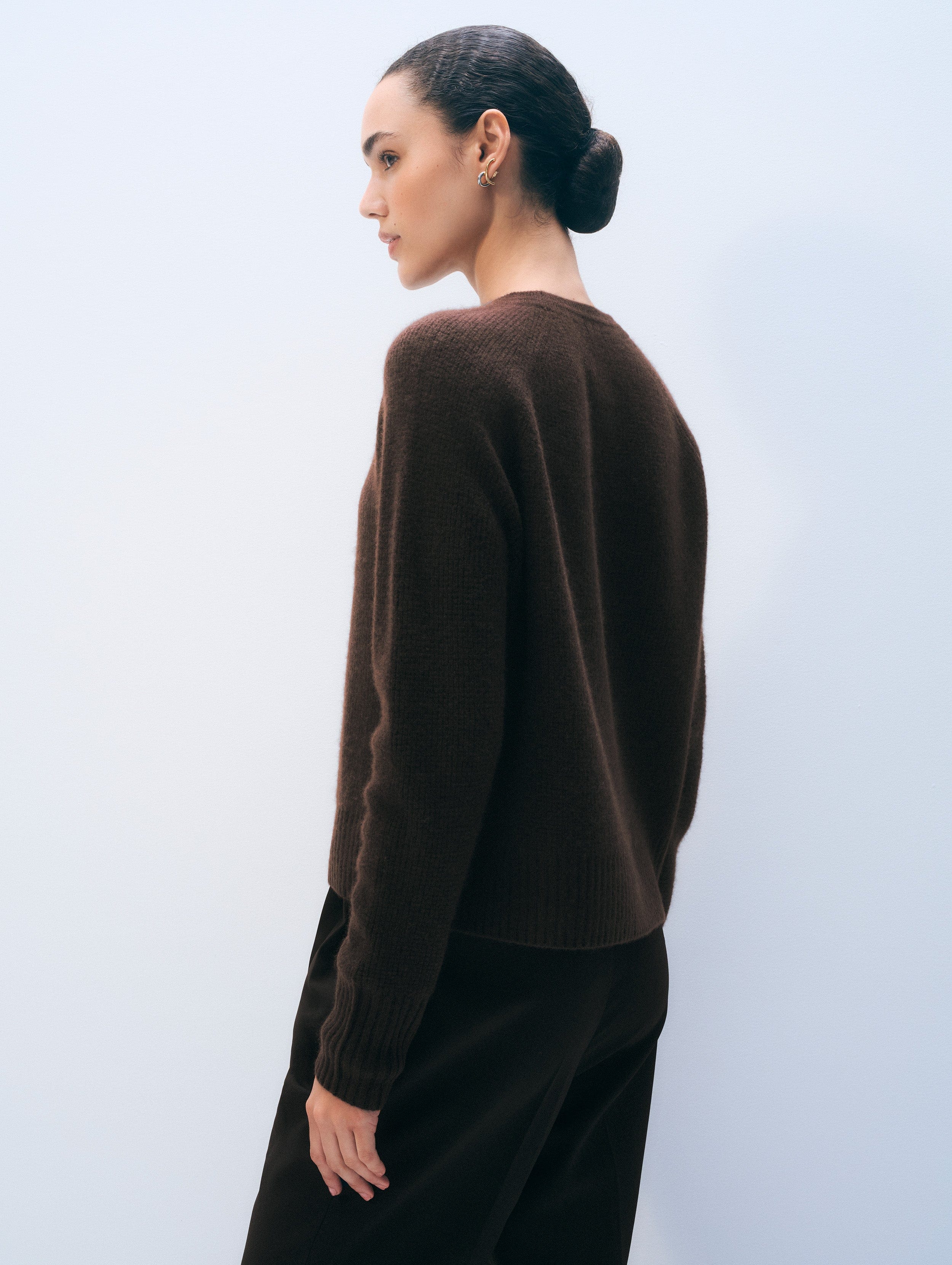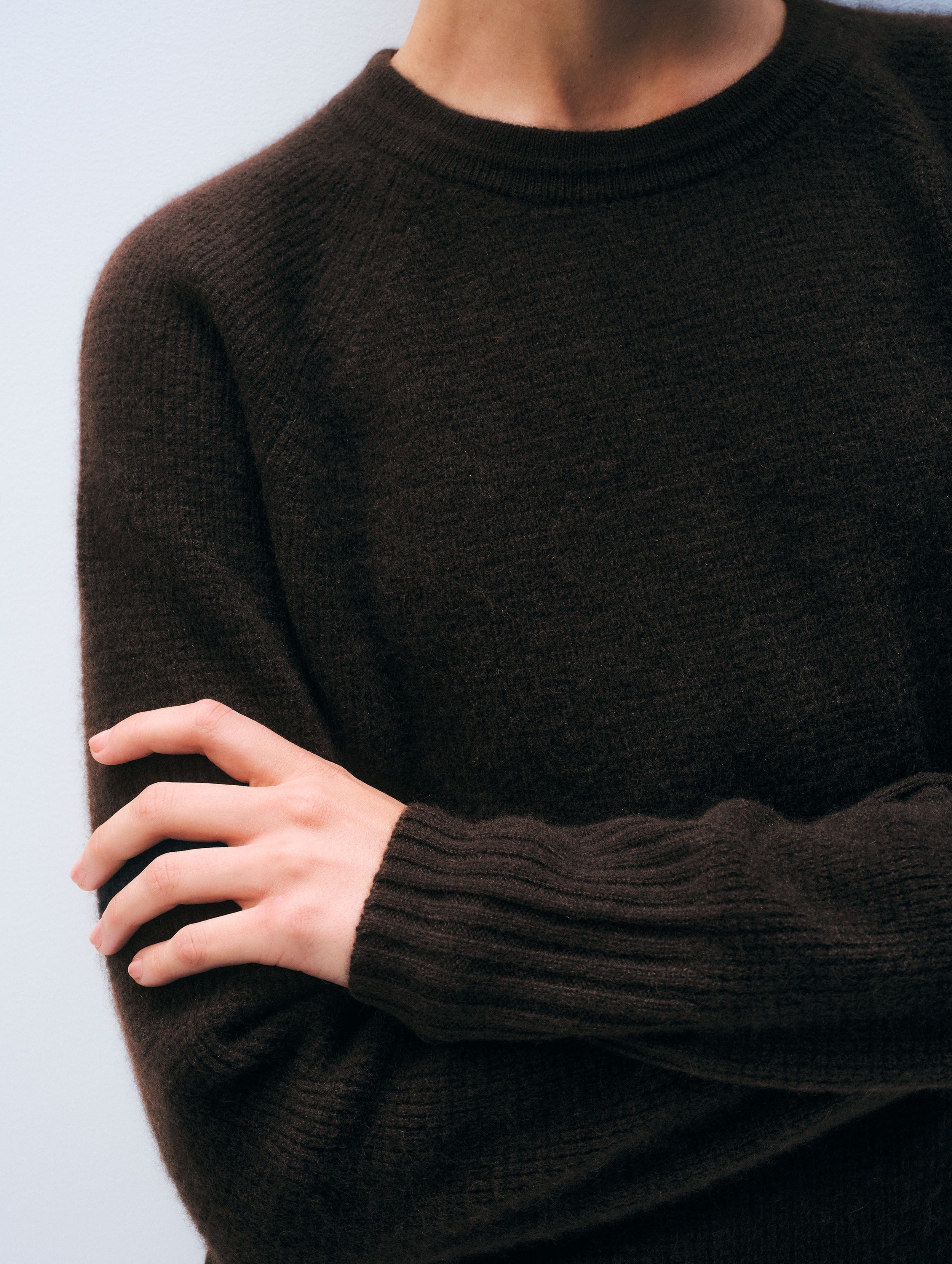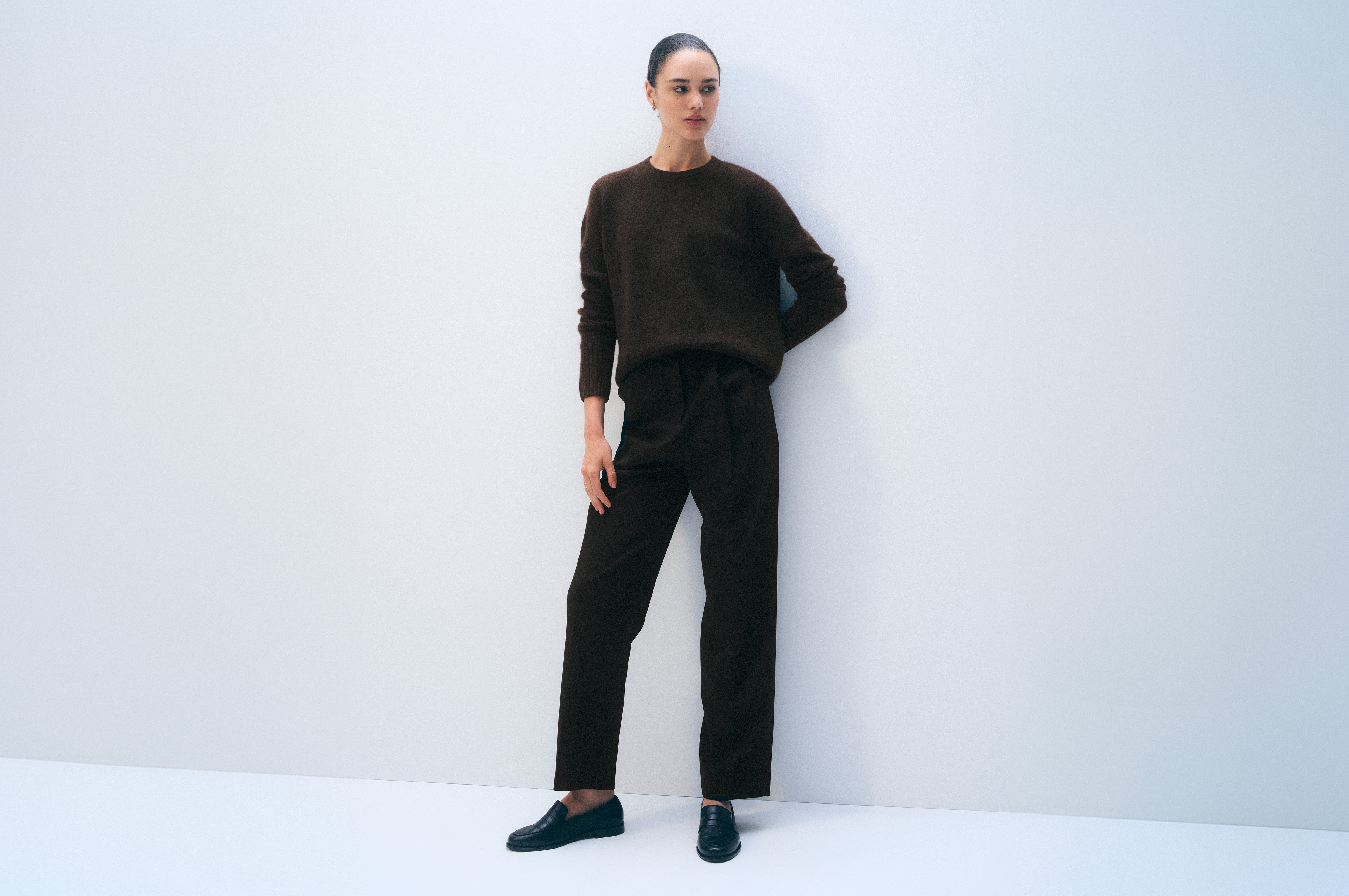 We're known for our Mongolian cashmere, made supremely soft through a custom wash technique. Select cashmere styles are finished with three hand-embroidered bar tacks at the back neck or side seam—an abstract "W" that signifies the White & Warren touch.