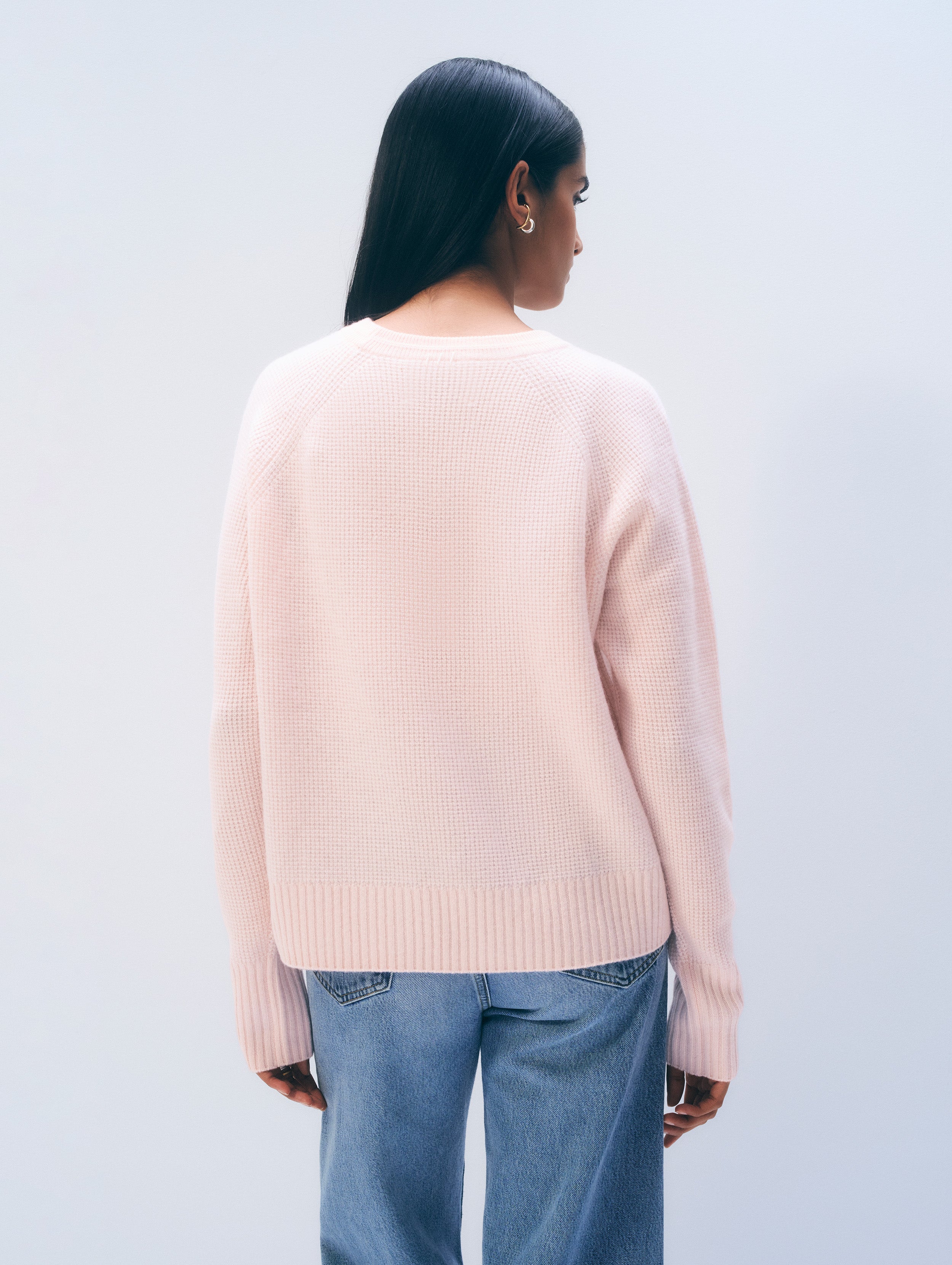 A luxury crewneck you'll reach for daily. Knit with pure cashmere in a waffle stitch, it offers exceptional softness and rich texture. This easy fit is refined with raglan sleeves and subtle back-neck tacking.
