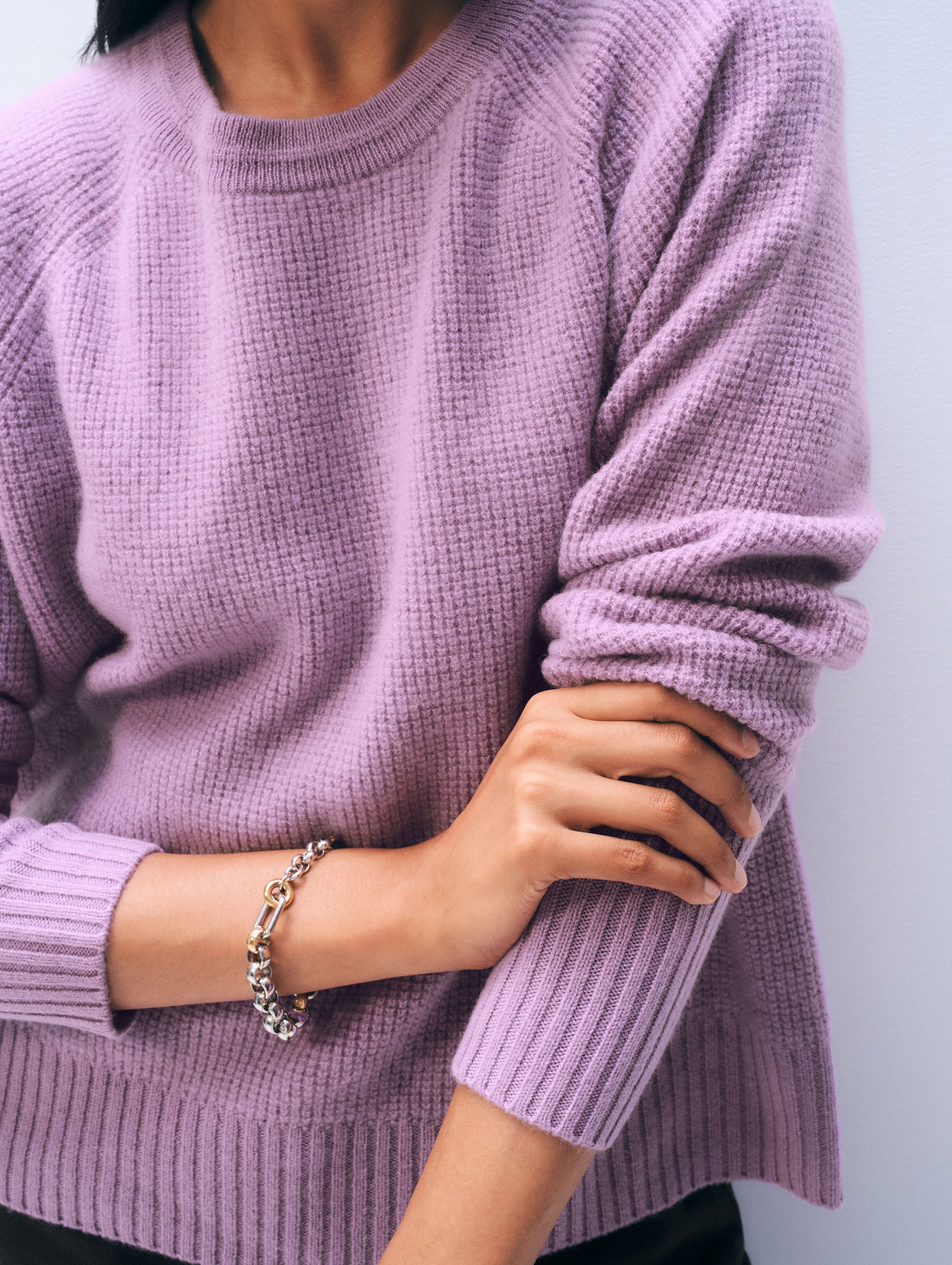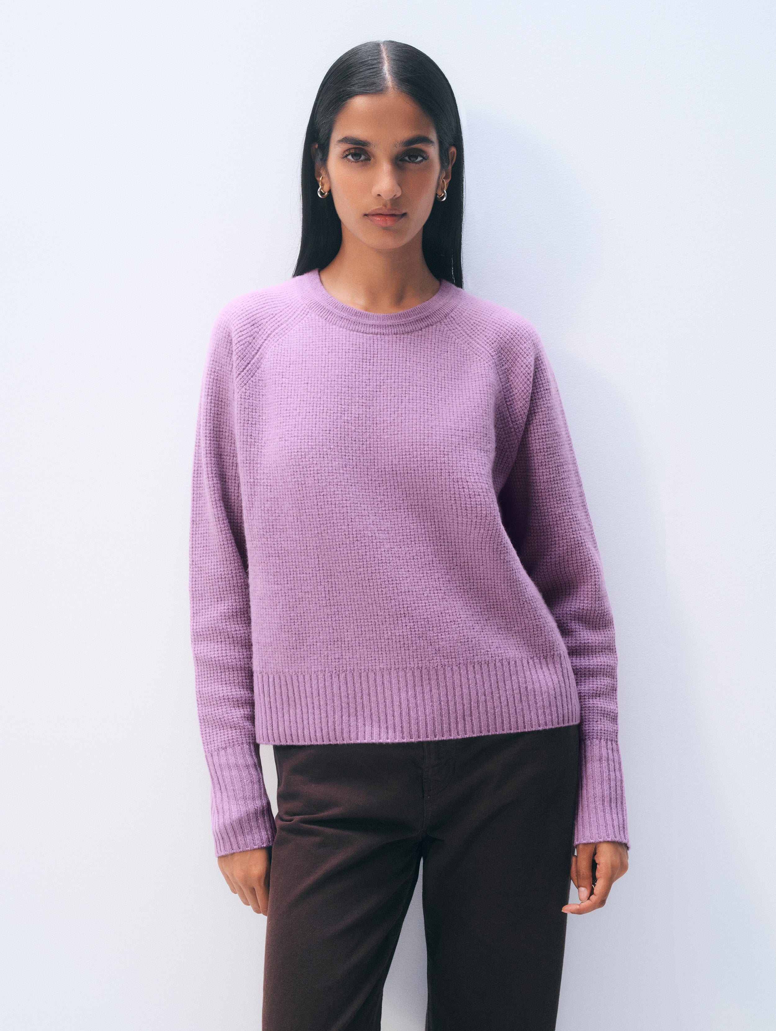A luxury crewneck you'll reach for daily. Knit with pure cashmere in a waffle stitch, it offers exceptional softness and rich texture. This easy fit is refined with raglan sleeves and subtle back-neck tacking.