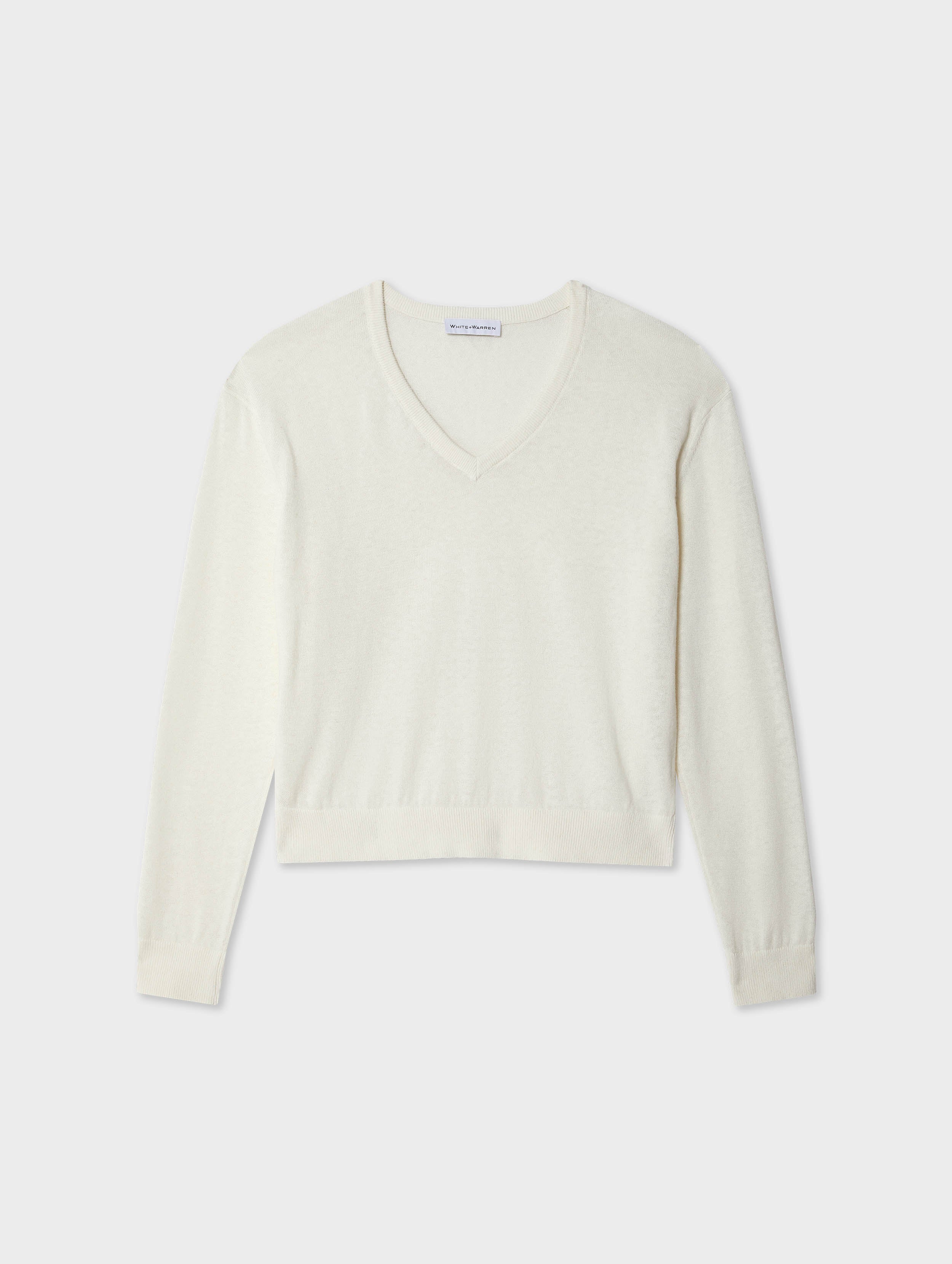We're known for our Mongolian cashmere, made supremely soft through a custom wash technique. Select cashmere styles are finished with three hand-embroidered bar tacks at the back neck or side seam—an abstract "W" that signifies the White & Warren touch.