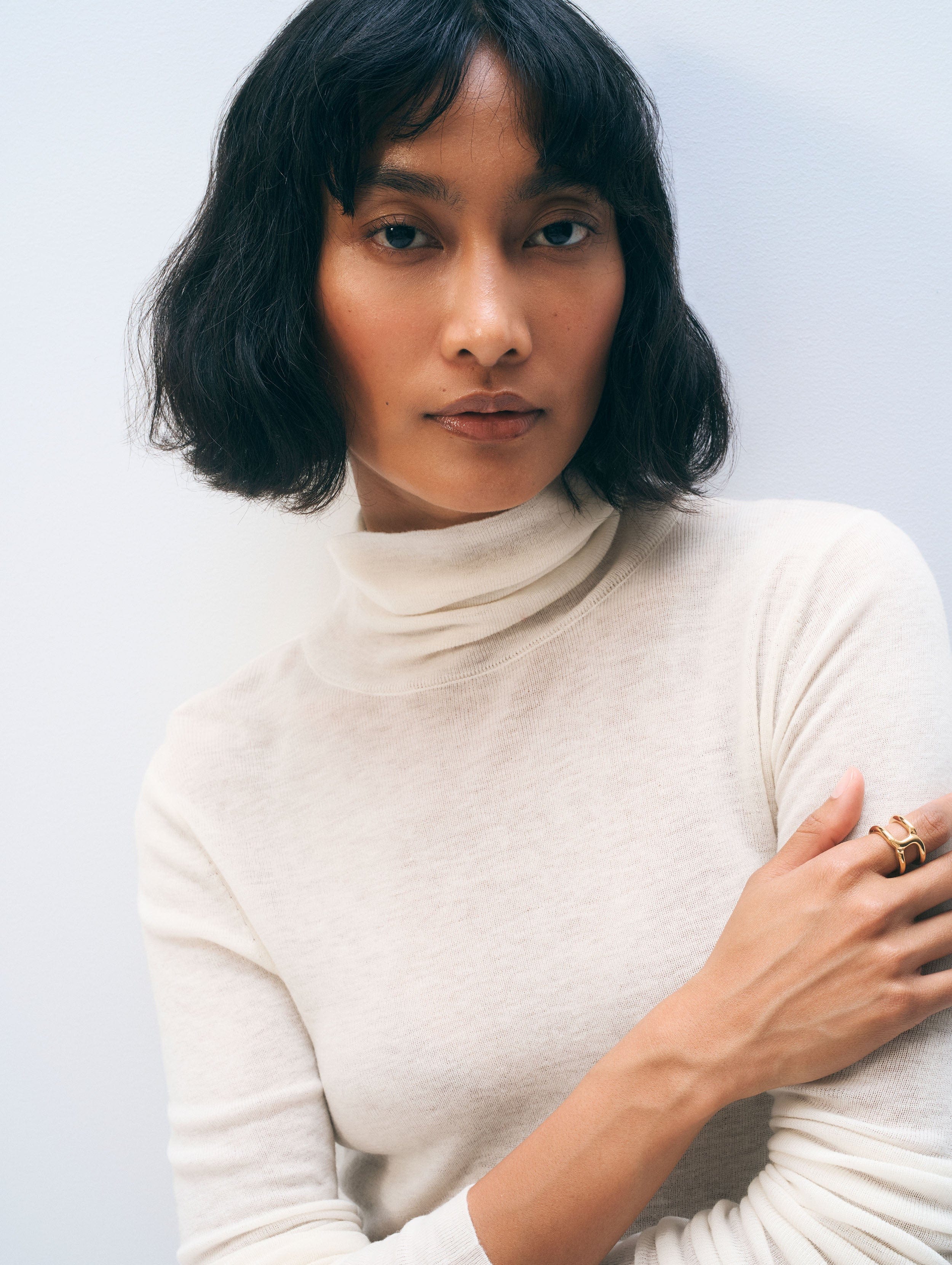 A finely ribbed turtleneck knit in our signature Superfine Cashmere Blend. Lightweight and slim-fitting, it's soft, sleek, and easily layerable.