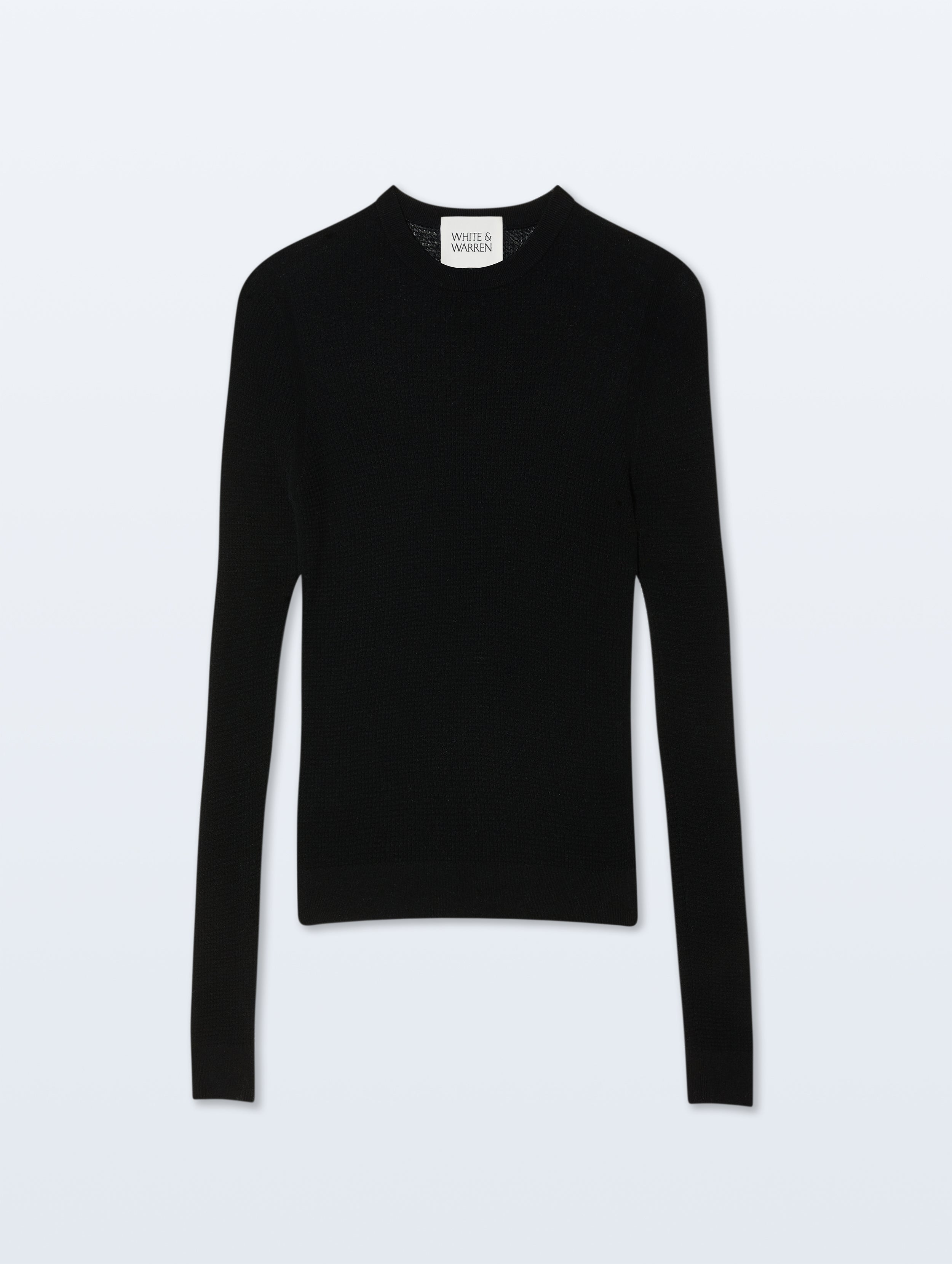 Superfine Cashmere Blend Waffle Crewneck | Black