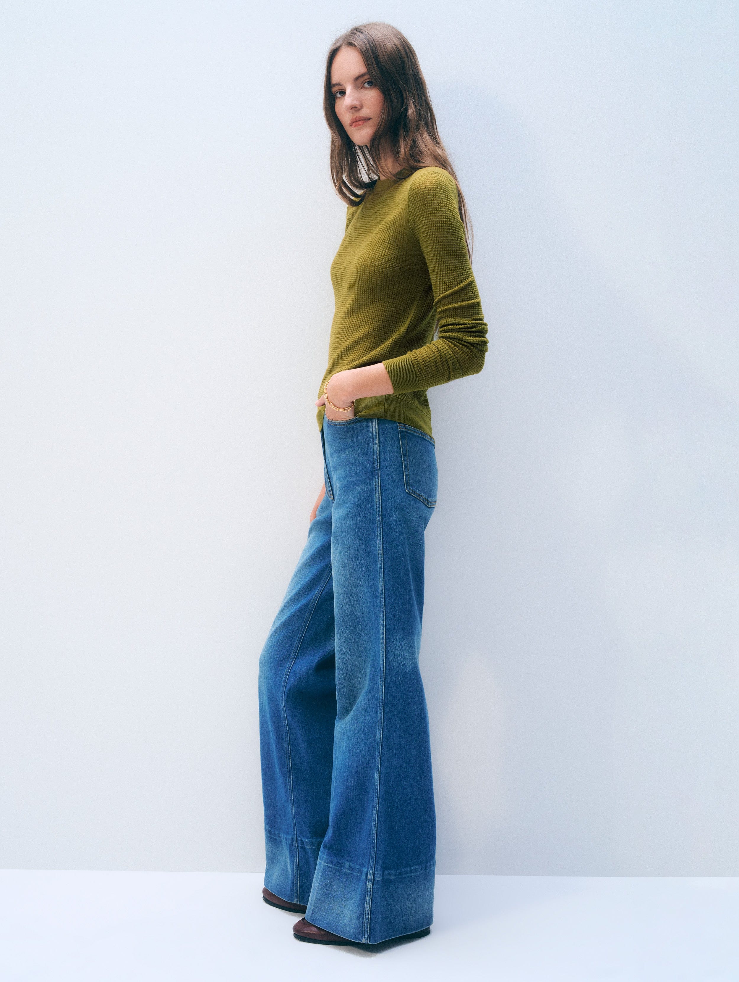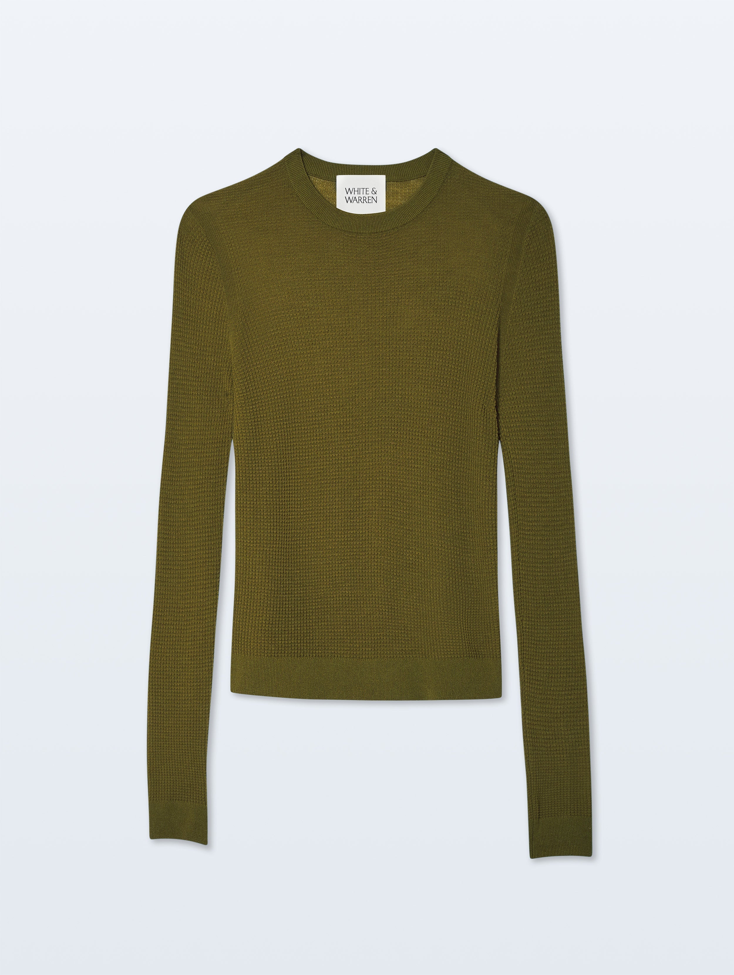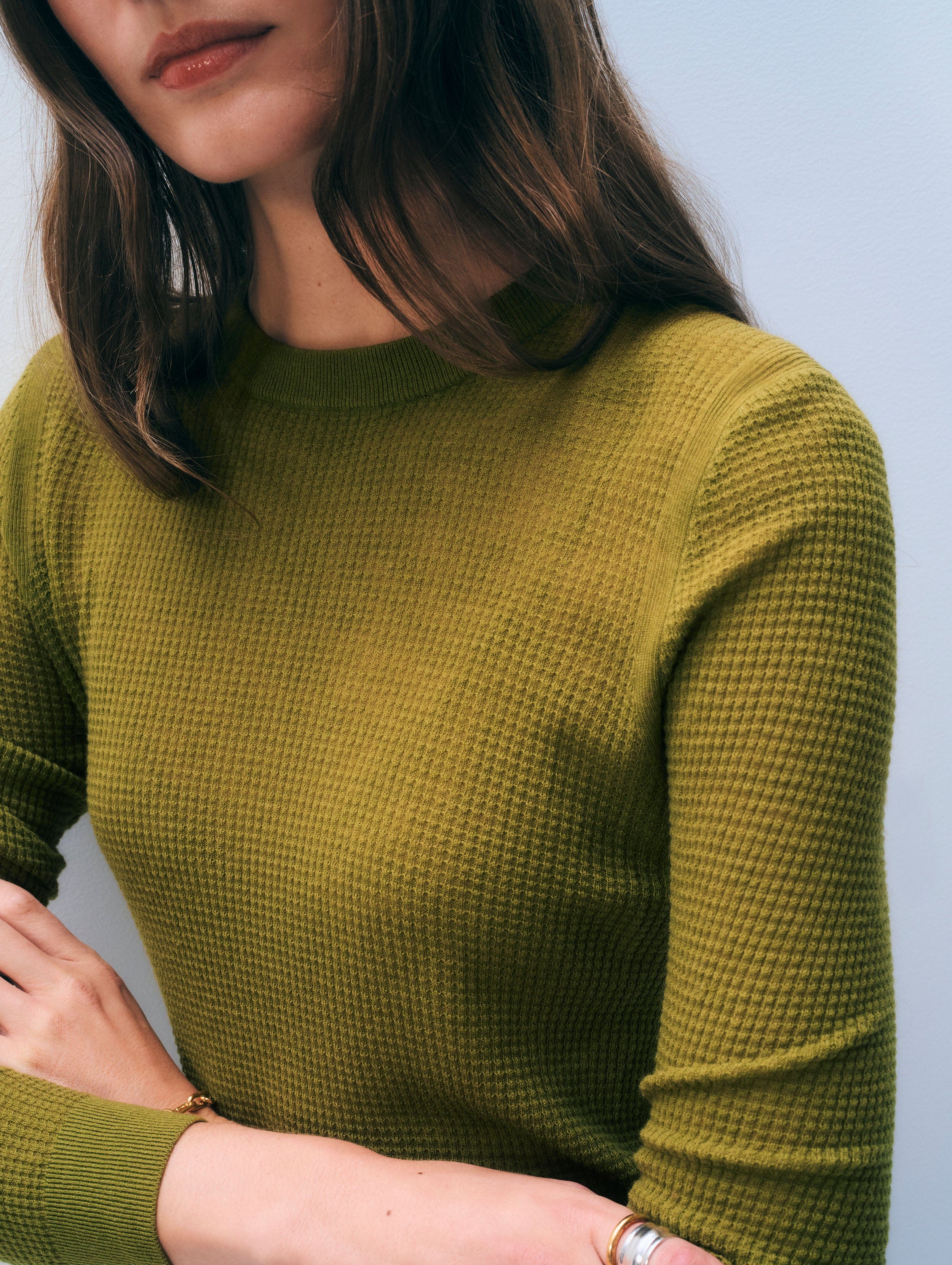 Superfine Cashmere Blend Waffle Crewneck | Bright Olive