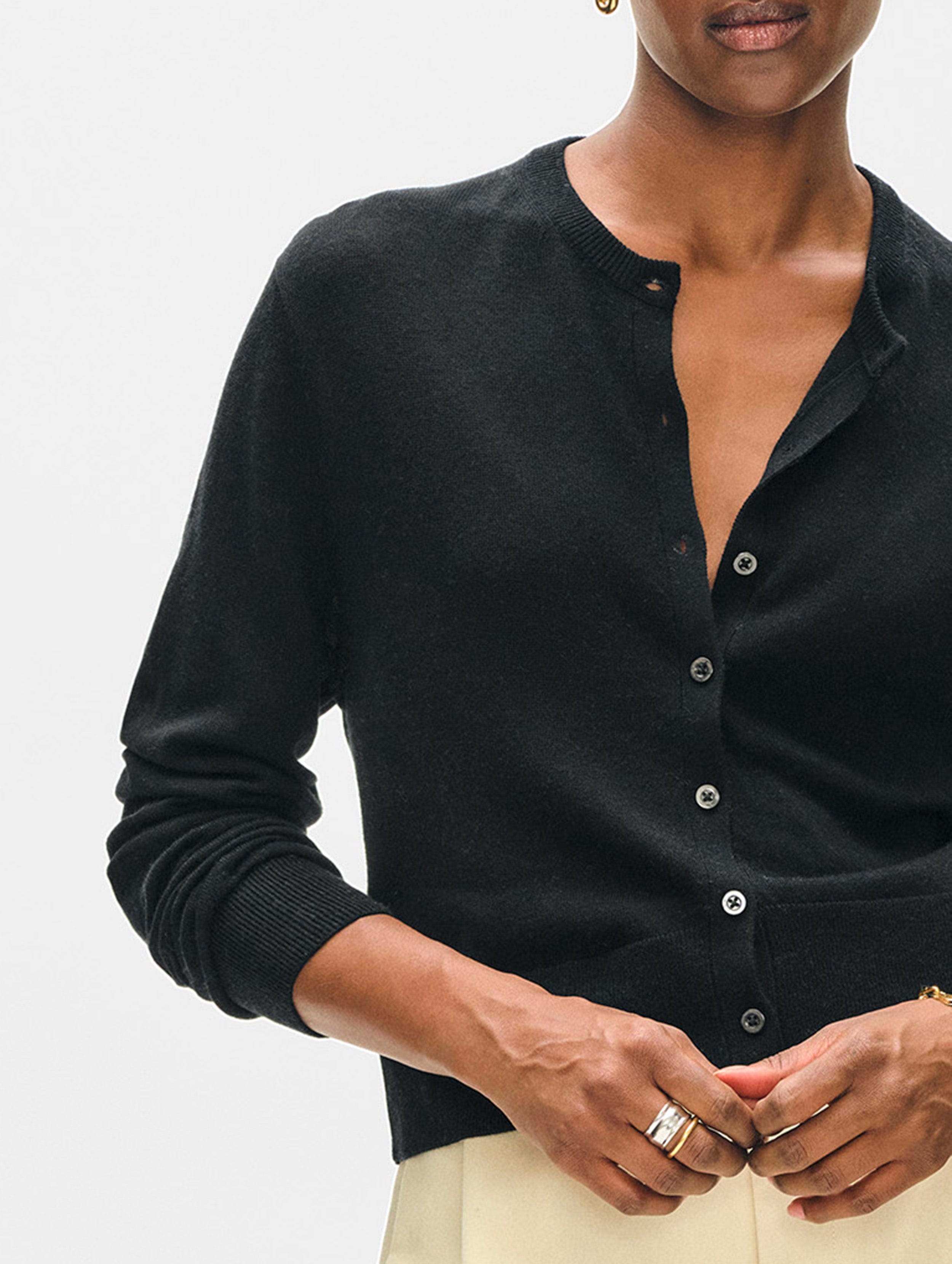 A luxurious layer that elevates every look, the Superfine Cashmere Button Cardigan is a must-wear transitional piece. Its superfine merino-cashmere fabric feels comfortable yet lightweight, ensuring warmth without any bulkiness. Wear buttoned-up as a standalone sweater or layer over a tank.