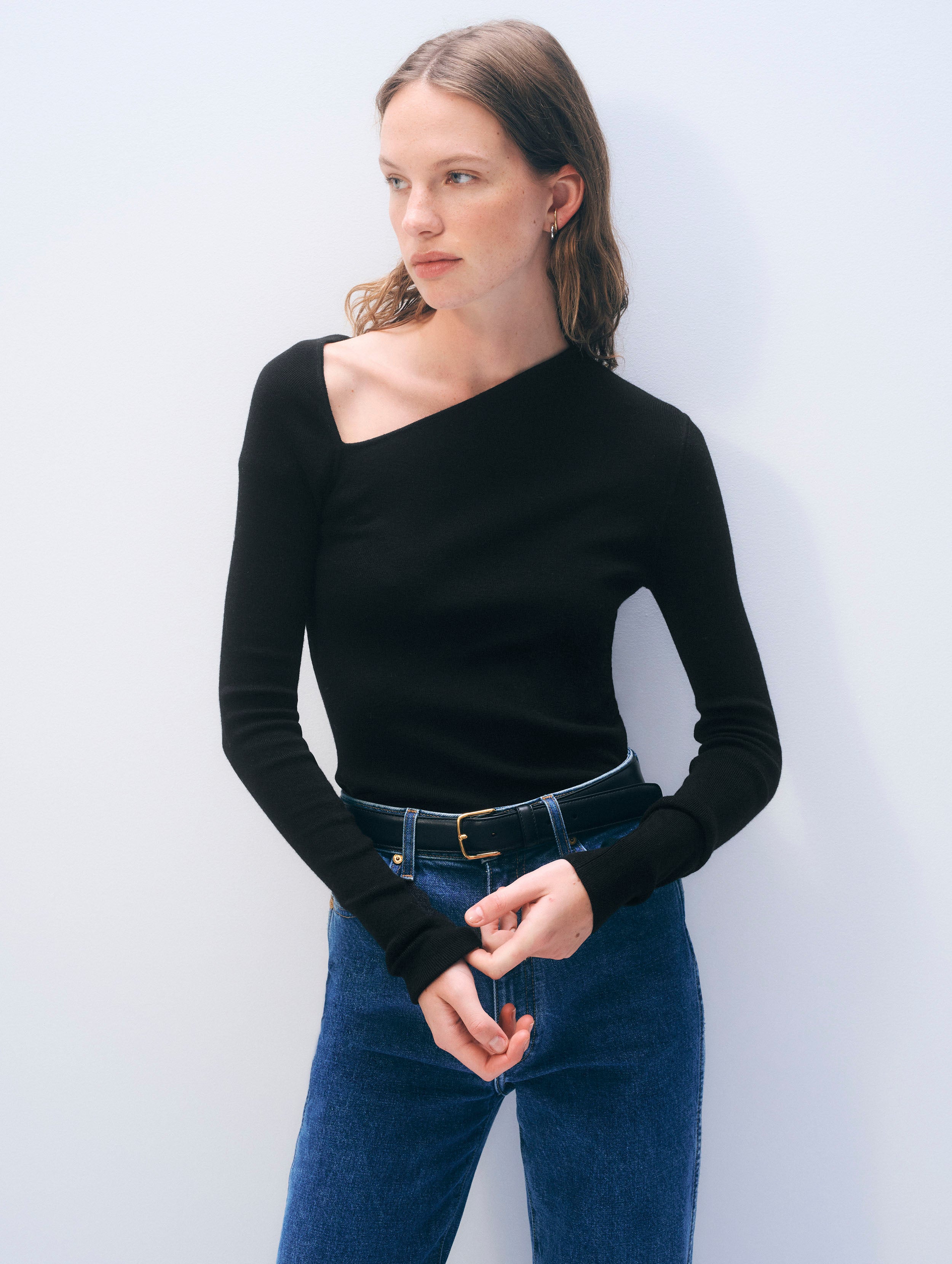 An elevated take on the one-shoulder silhouette. Knit from superfine merino wool, this ribbed statement top offers generous stretch while maintaining its clean shape for a flattering, fashion-forward fit.