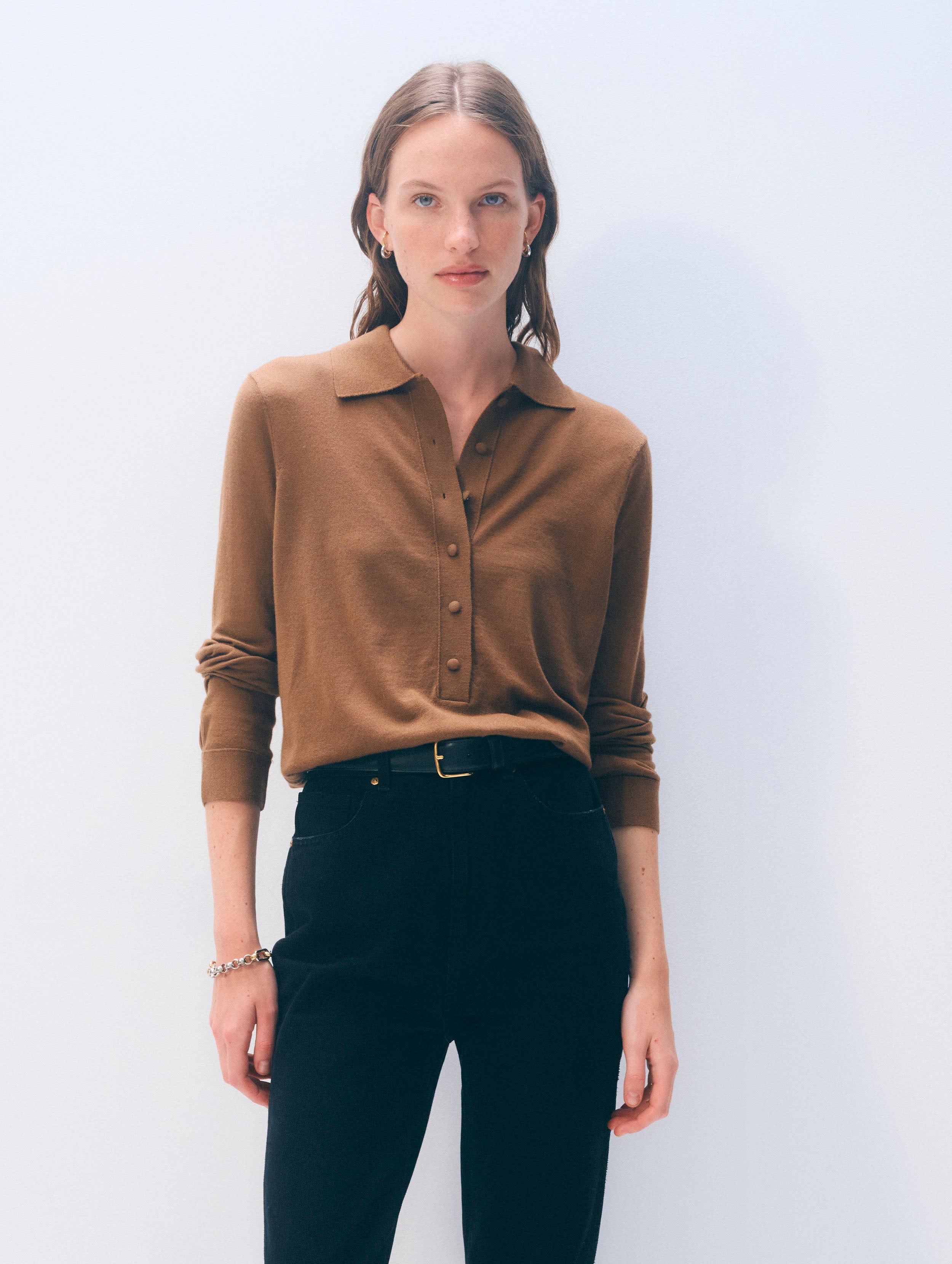 Superfine Merino Polo | Burnt Caramel