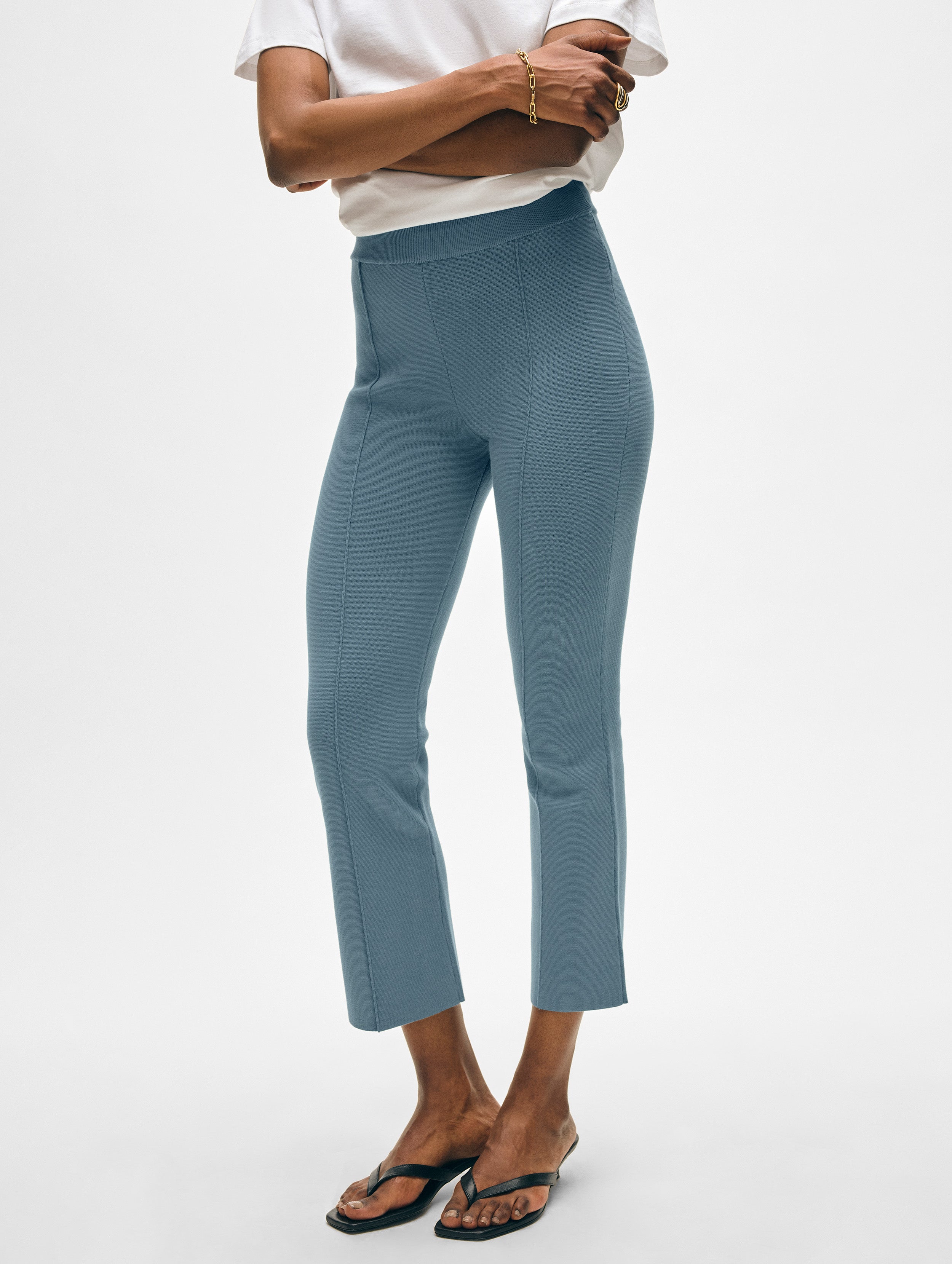 These double-knit cotton pants combine the comfort of sweats with the refinement of tailoring. An elastic waistband ensures comfortable all-day wear, while raised seams elongate the legs. Style it with the matching top or sweatshirt on travel days, or dress it up with a collared shirt during the week.