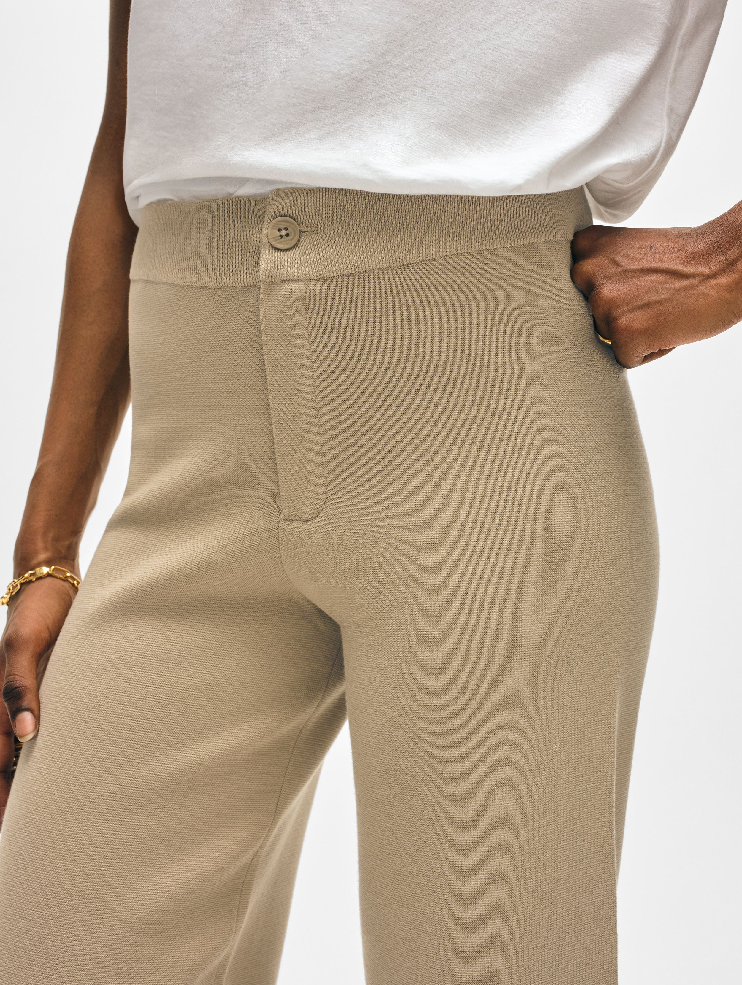 Superfine Organic Cotton Waisted Pant | Toasted Almond
